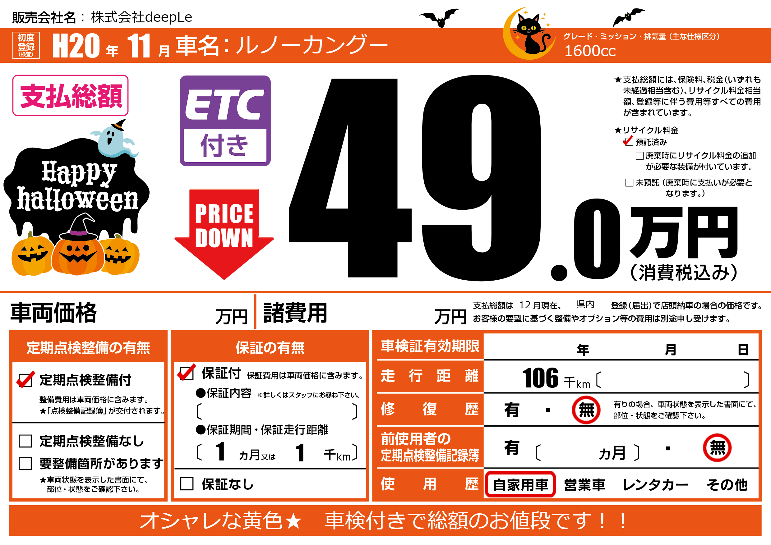 | 走行キロ | 10.6万km | 初年度登録 | H20年11月 |