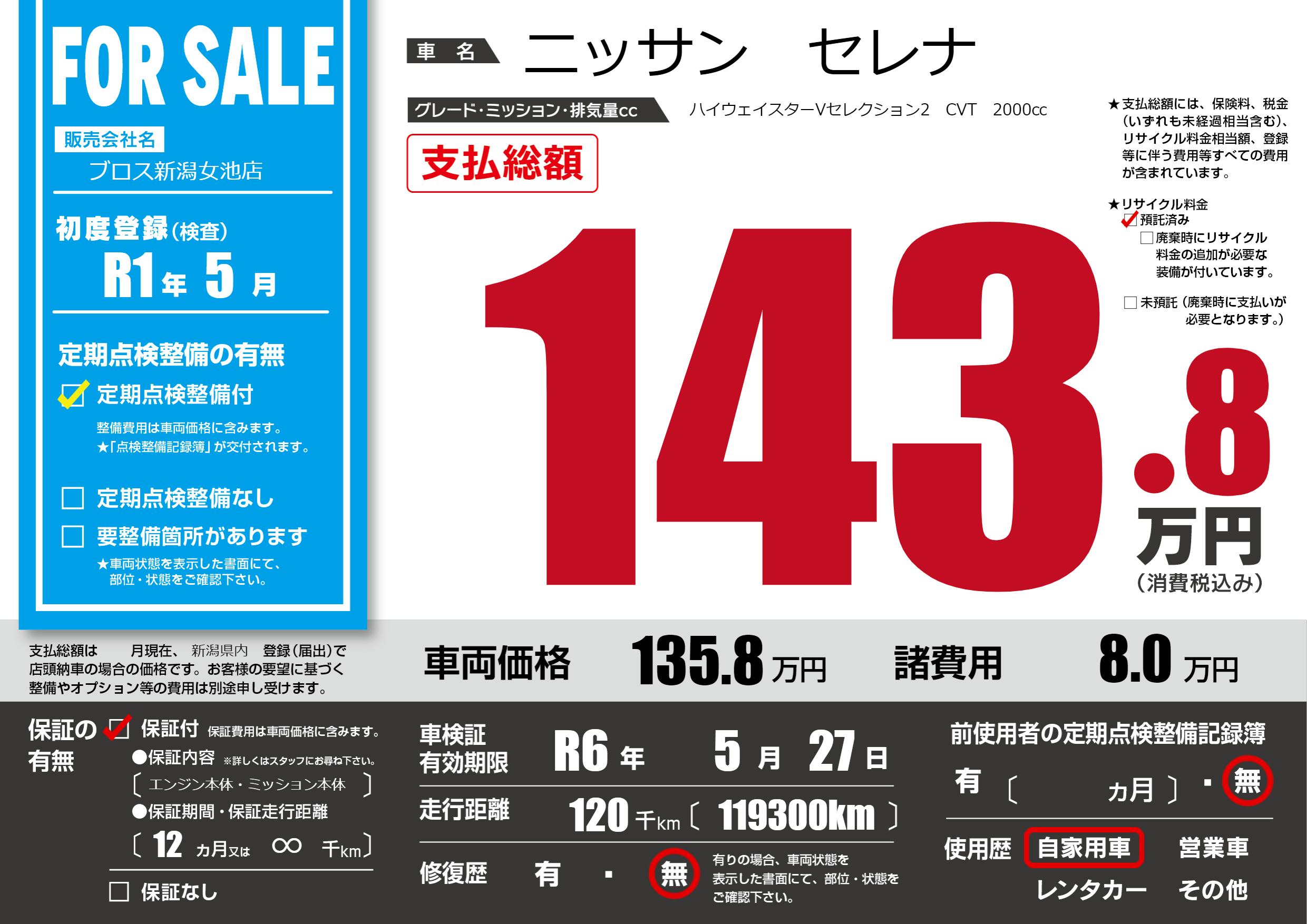 なし | 車検制限 | R6年5月27月 |