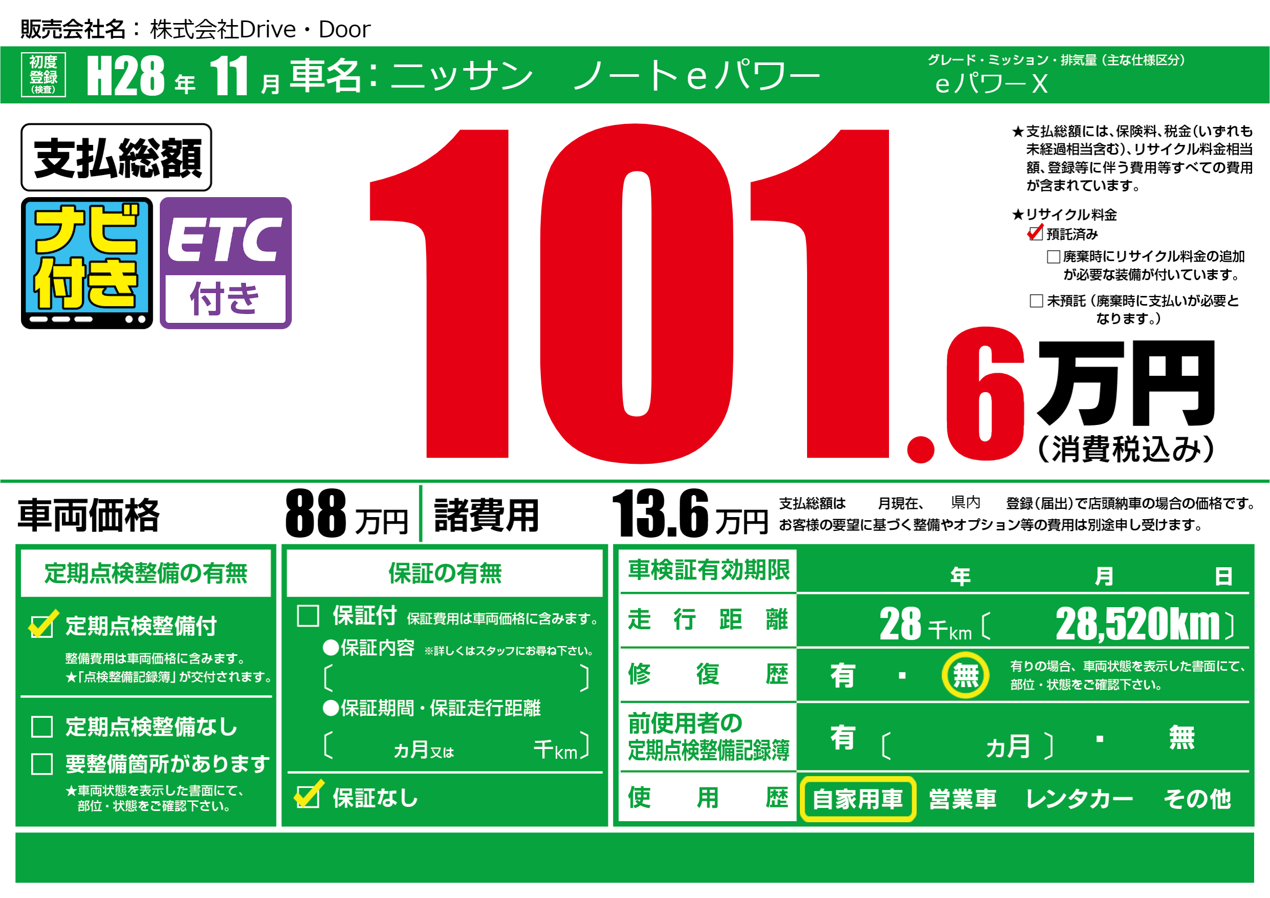 | 定期点検整備 | 定期点検整備あり | ||