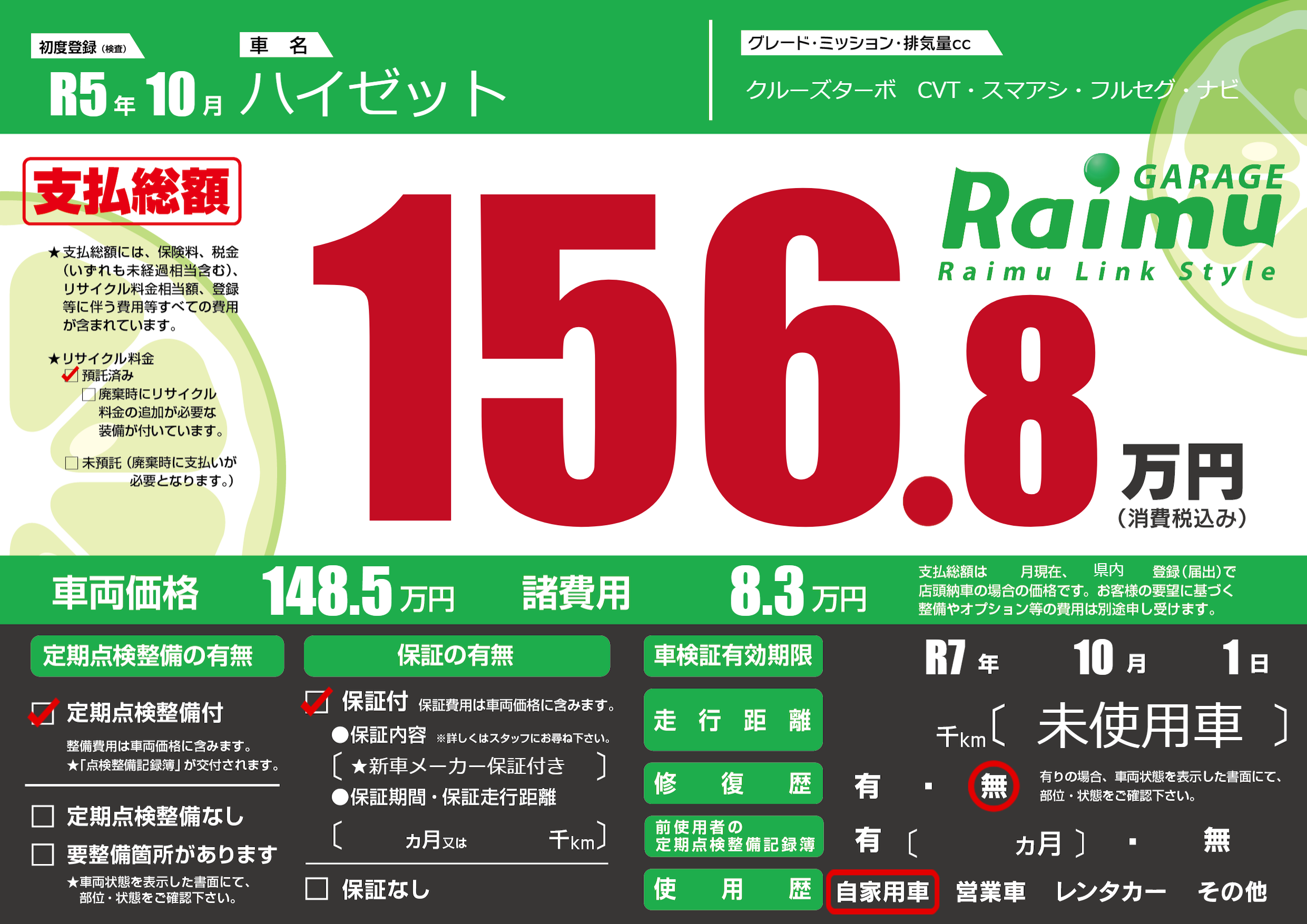 | 走行キロ | - | 初年度登録 | R5年10月 |