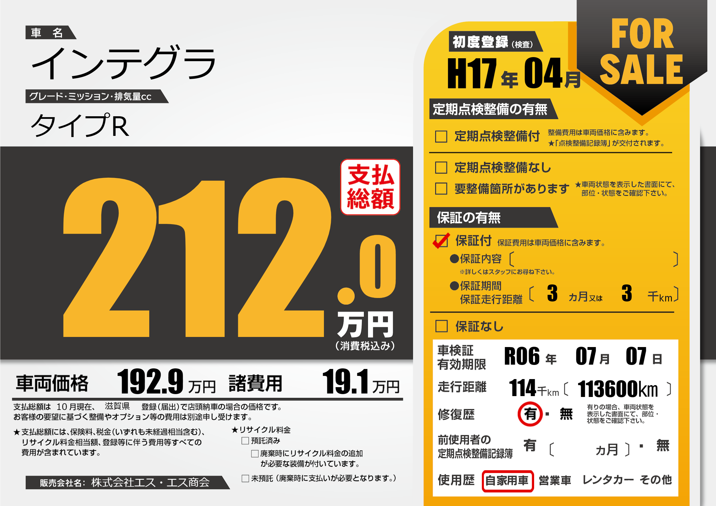なし | 車検制限 | R06年07月07月 |