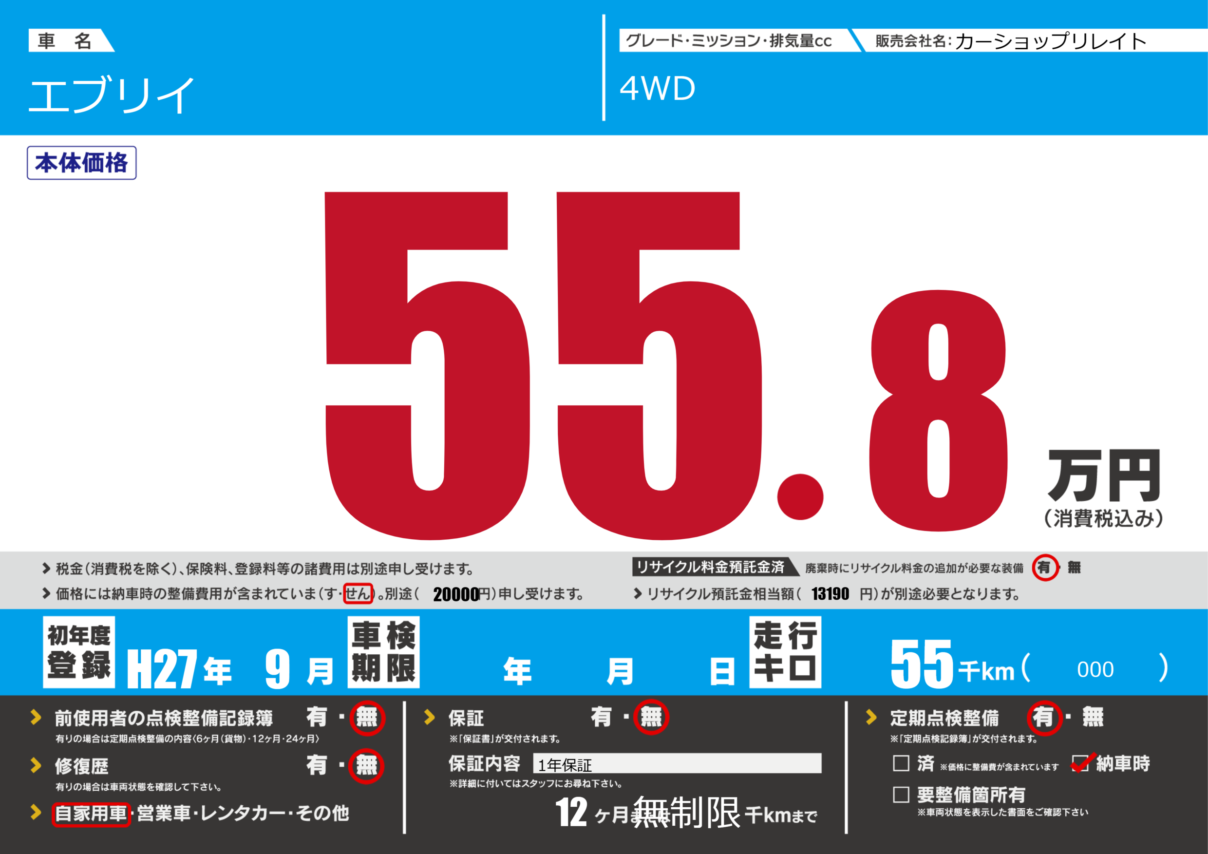 | 車名 | エブリイ | グレード ミッション 排気量 |