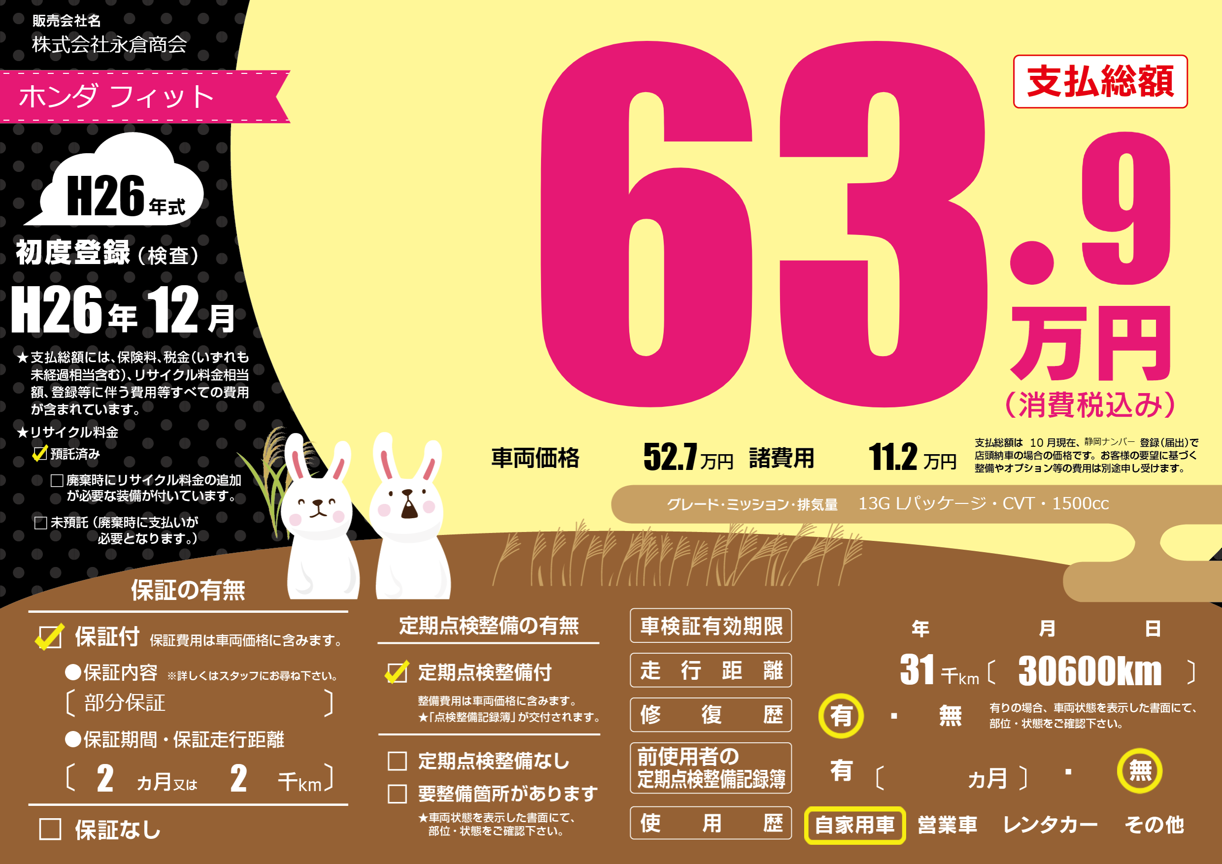 | 走行キロ | 3.1万km | 初年度登録 | H26年12月 |