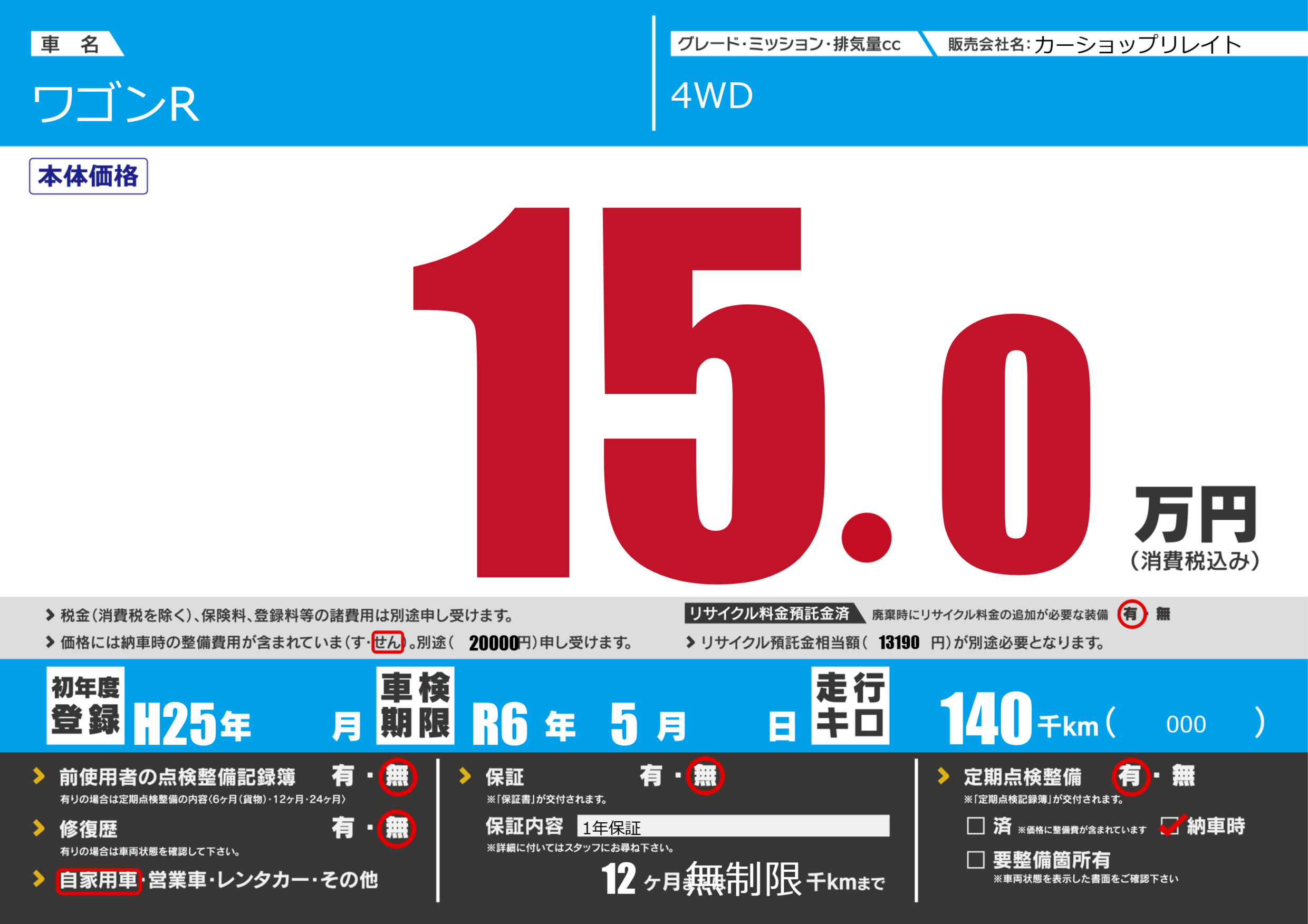 | 走行キロ | 14万km | ||