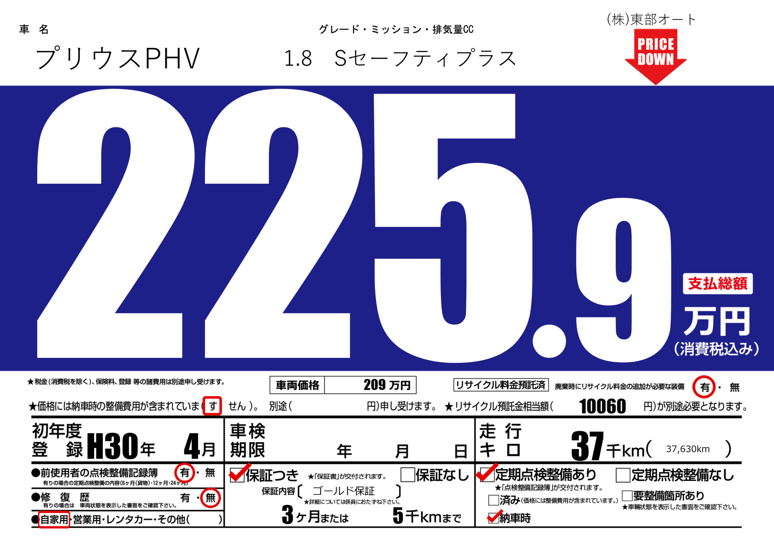 保証付き 保証内容( ゴールド保証) 3ヶ月または(5)千kmまで |