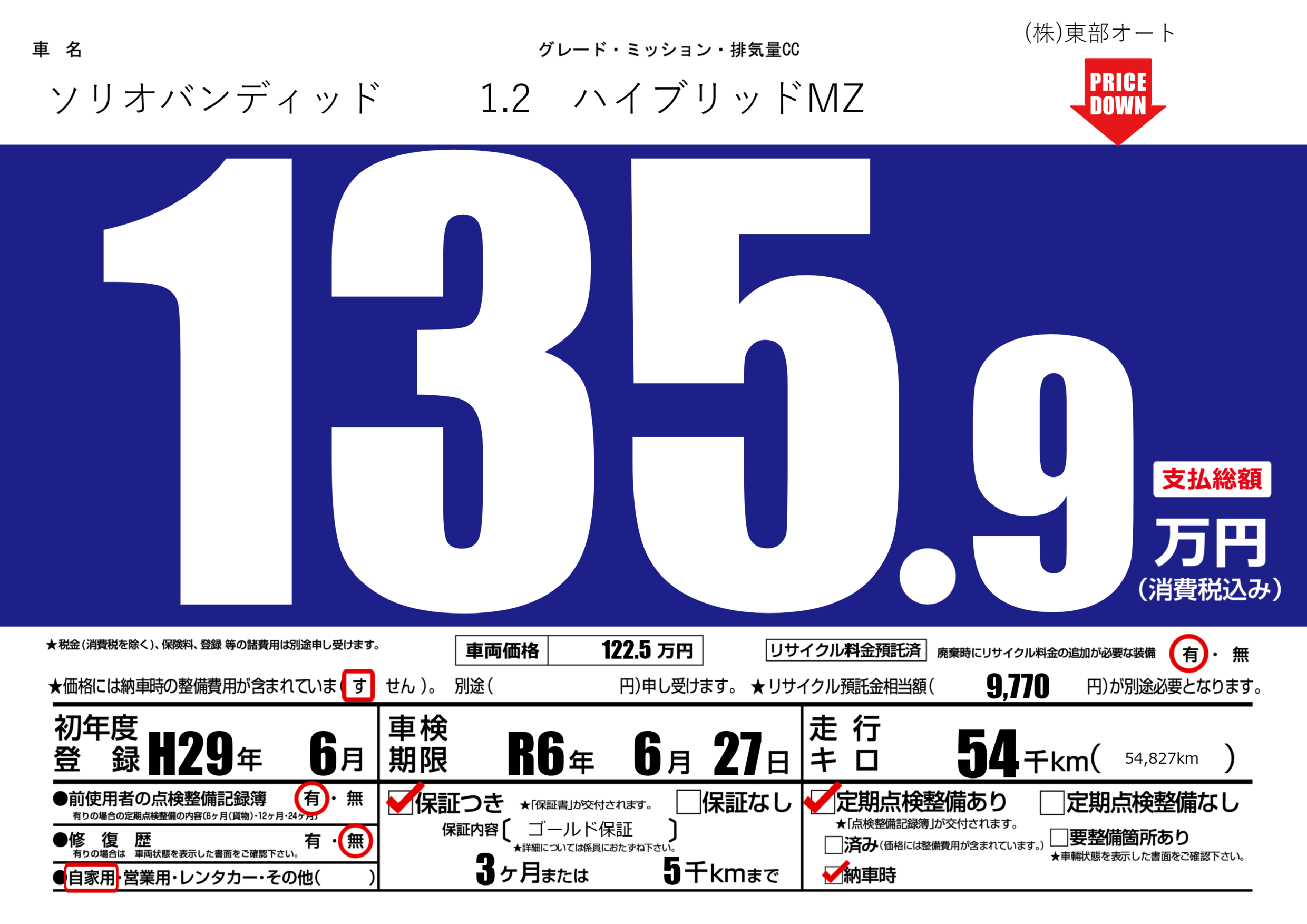 | 車名 | ソリオバンディッド | グレード ミッション 排気量 |