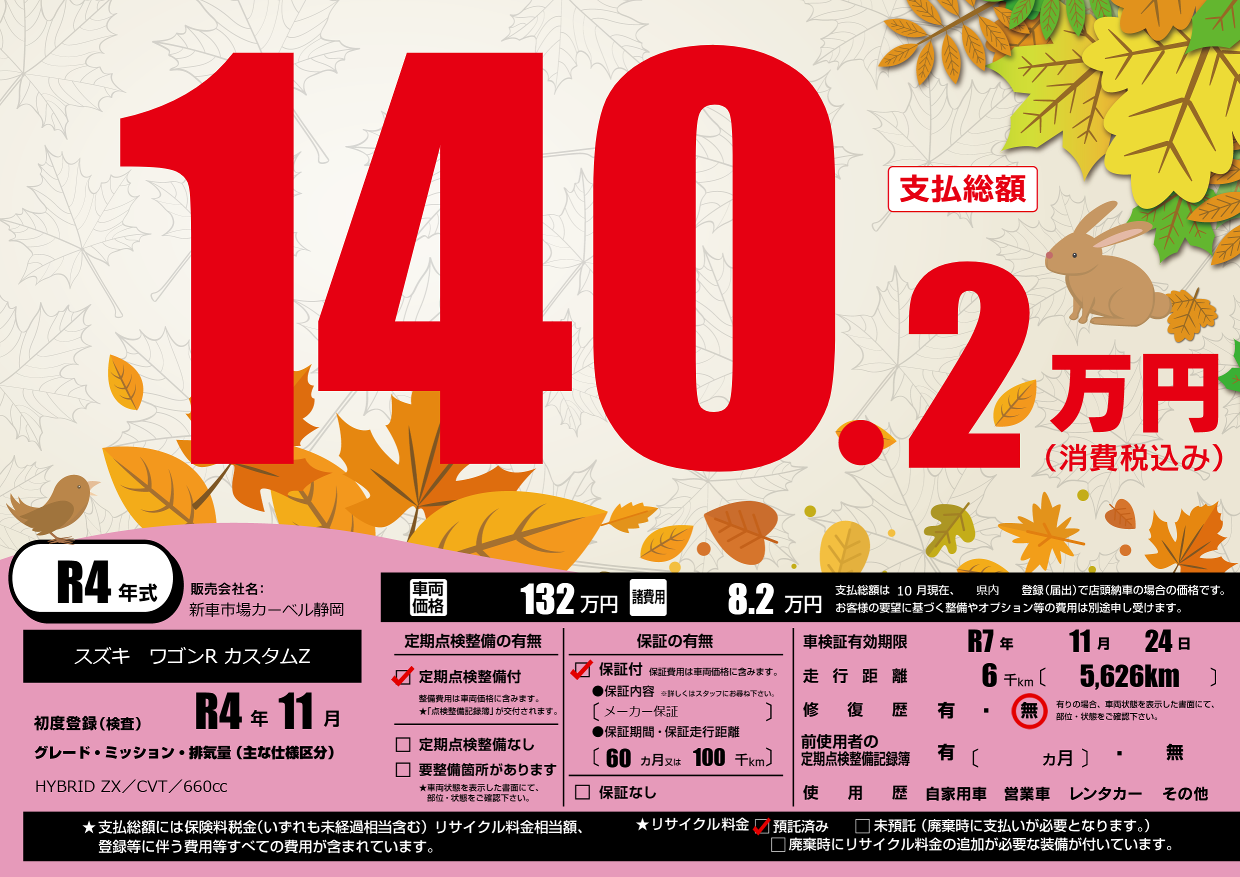 | 走行キロ | 0.6万km | 初年度登録 | R4年11月 |
