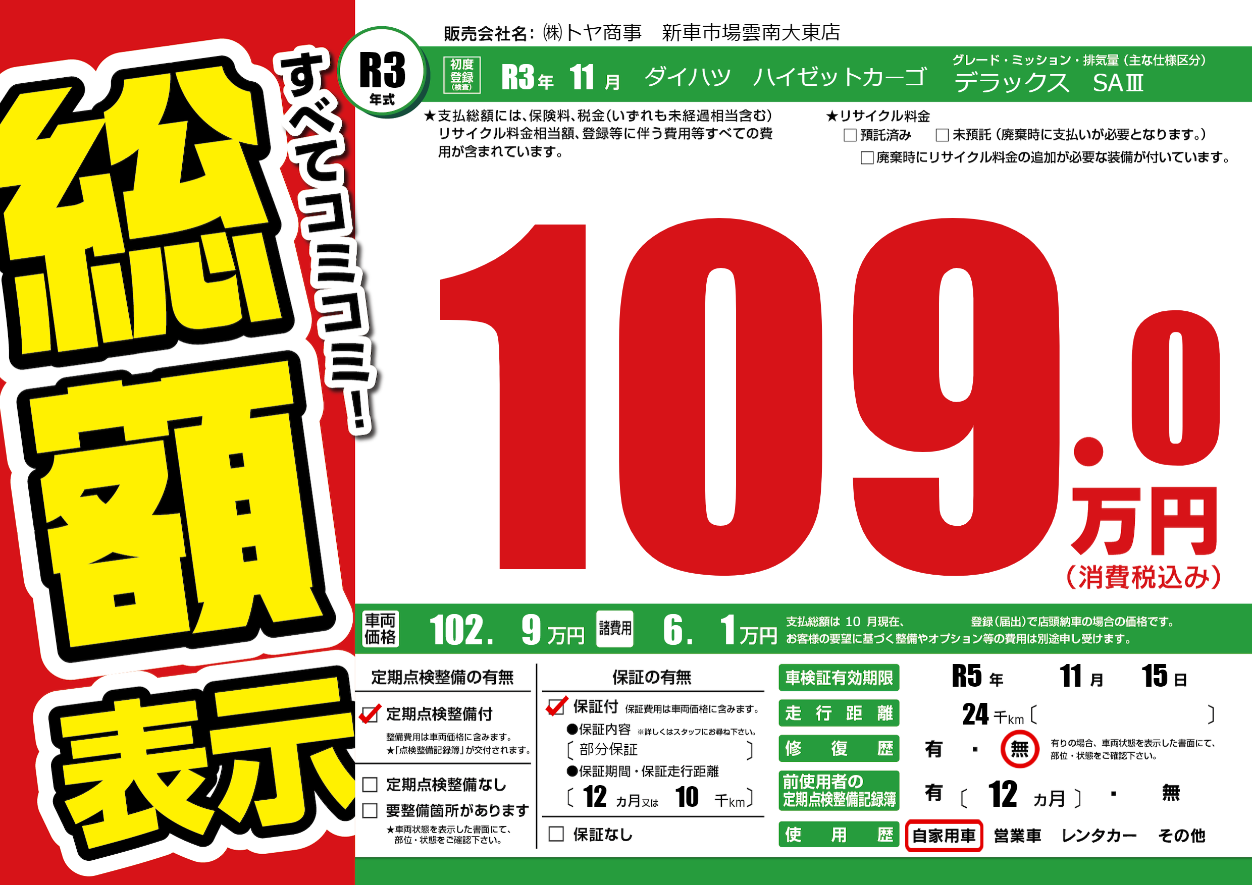 なし | 車検制限 | R5年11月15月 |