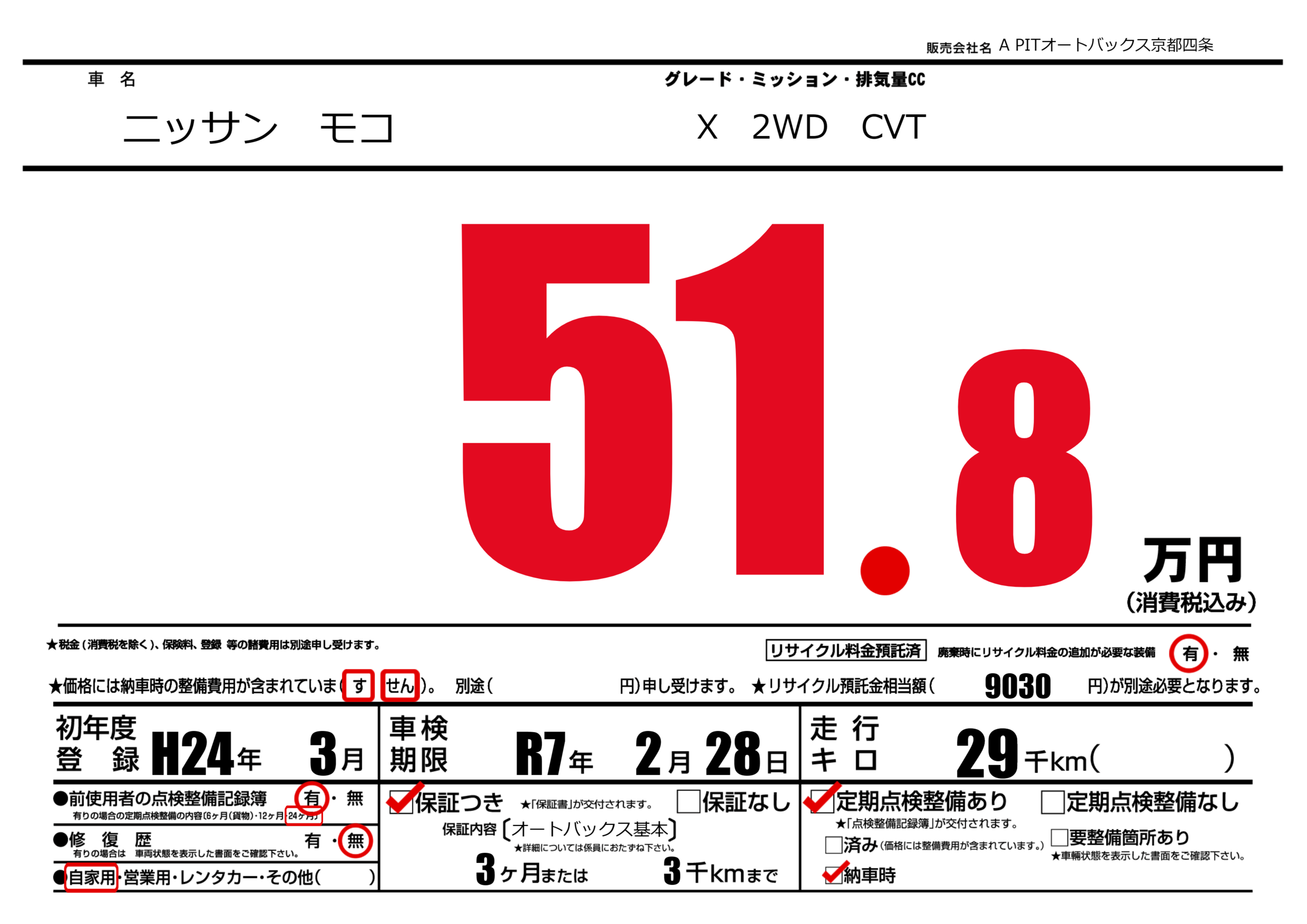 | 車名 | ニッサン モコ | グレード ミッション 排気量 |