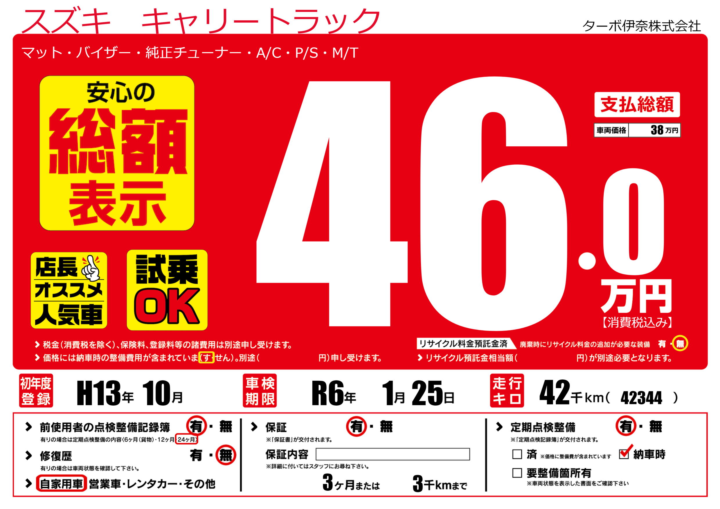 あり | 車検制限 | R6年1月25月 |