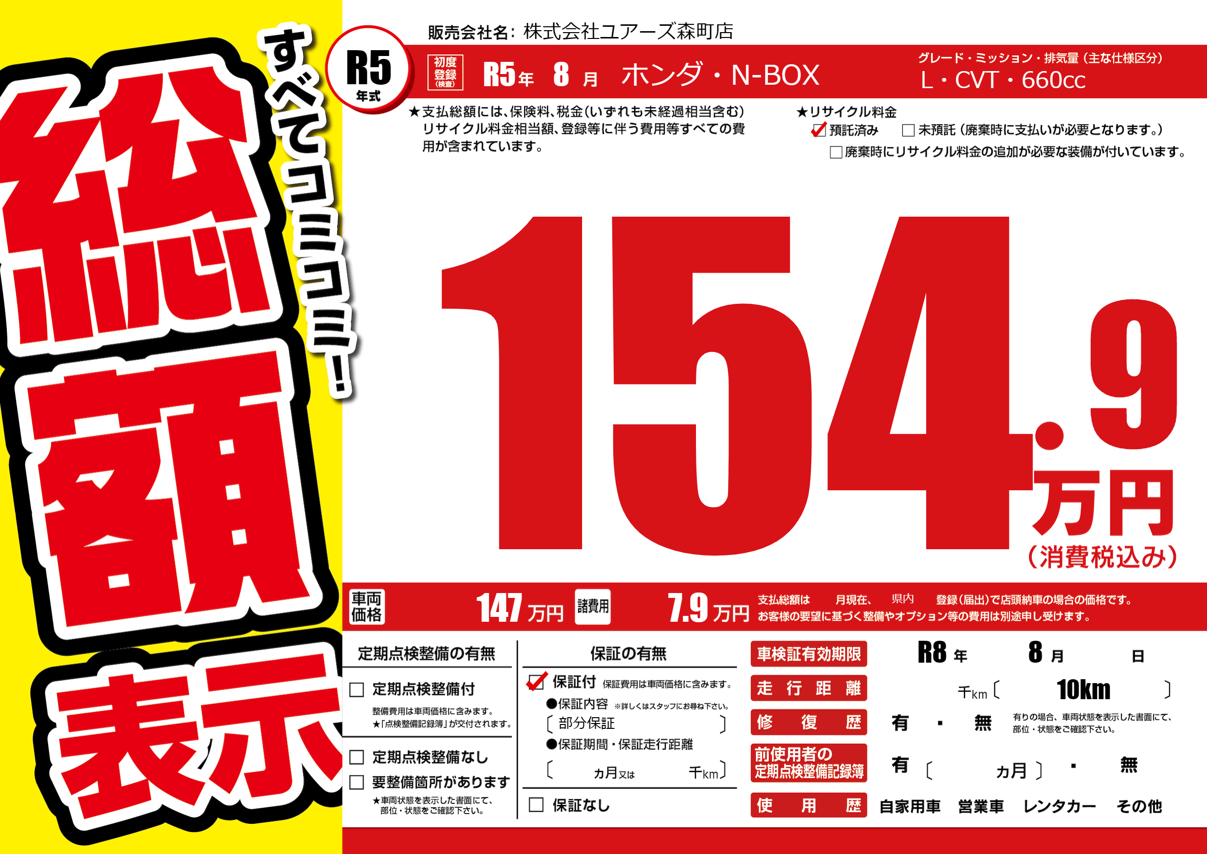 保証なし 保証内容(部分保証) ---ヶ月または()千kmまで |