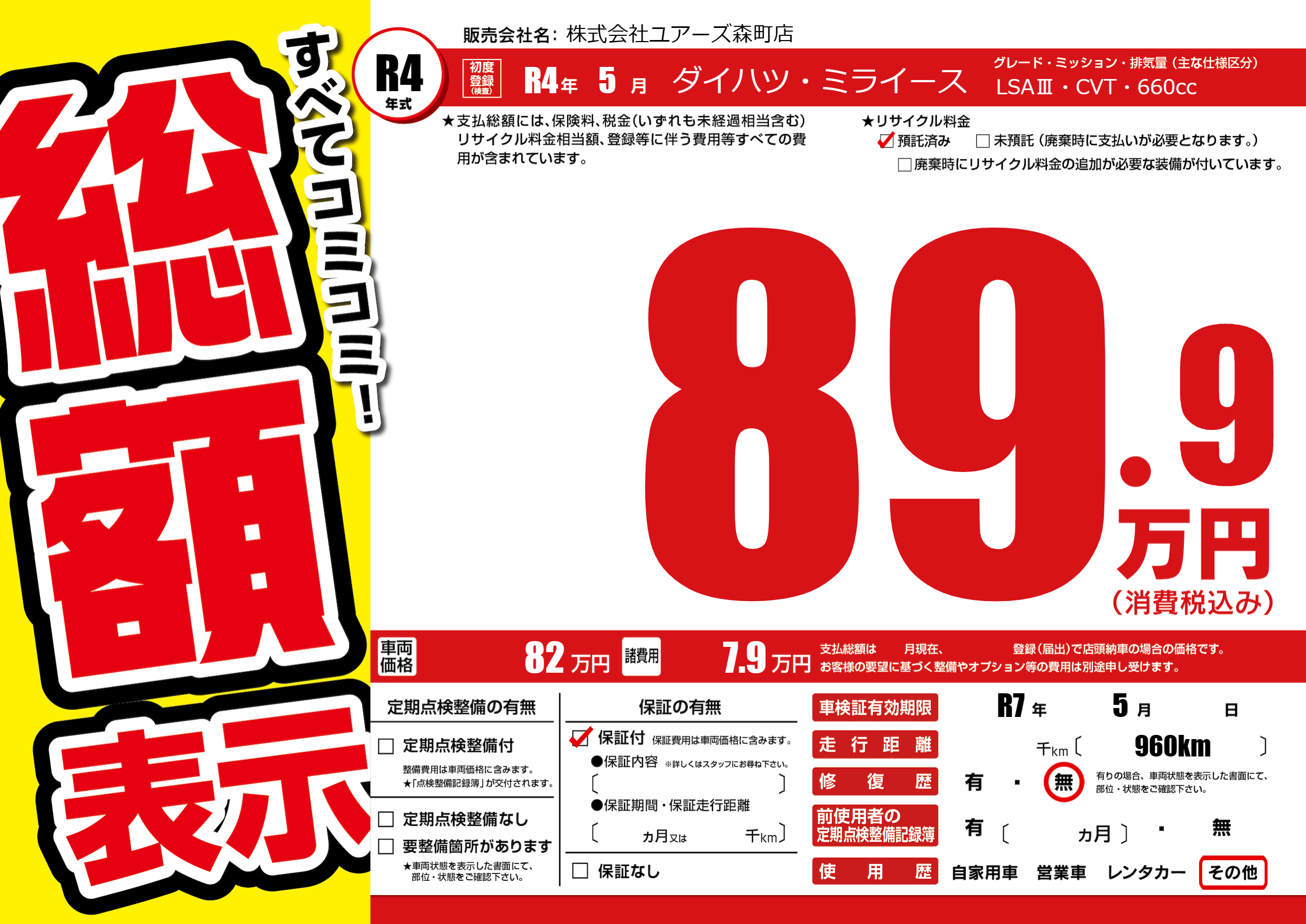 | 走行キロ | - | 初年度登録 | R4年5月 |