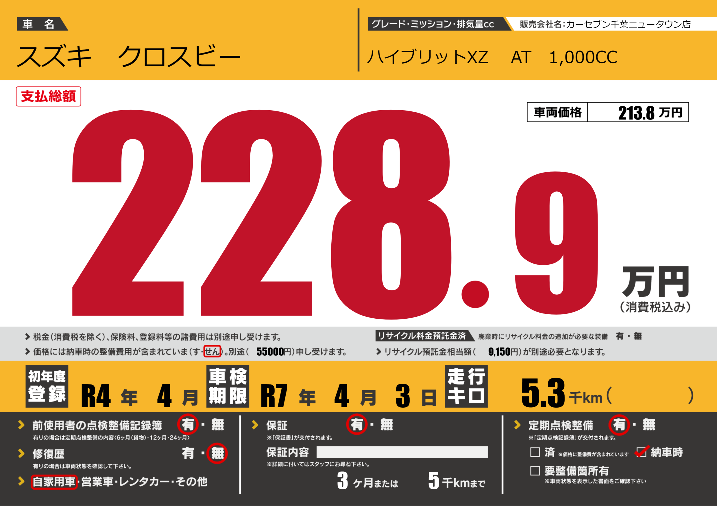 保証付き 保証内容(---) 3ヶ月または(5)千kmまで |