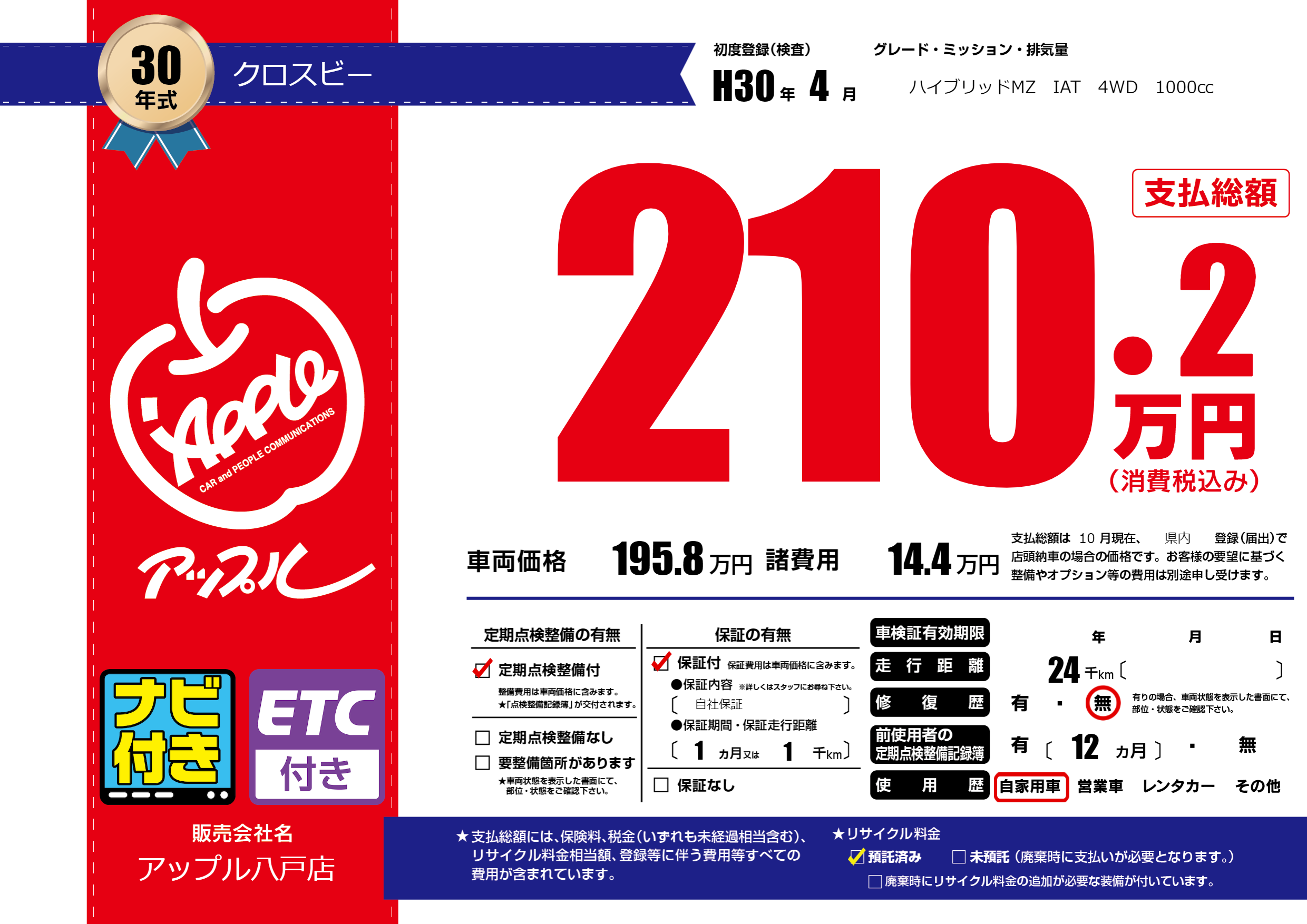 | 初年度登録 | H30年4月 | ||