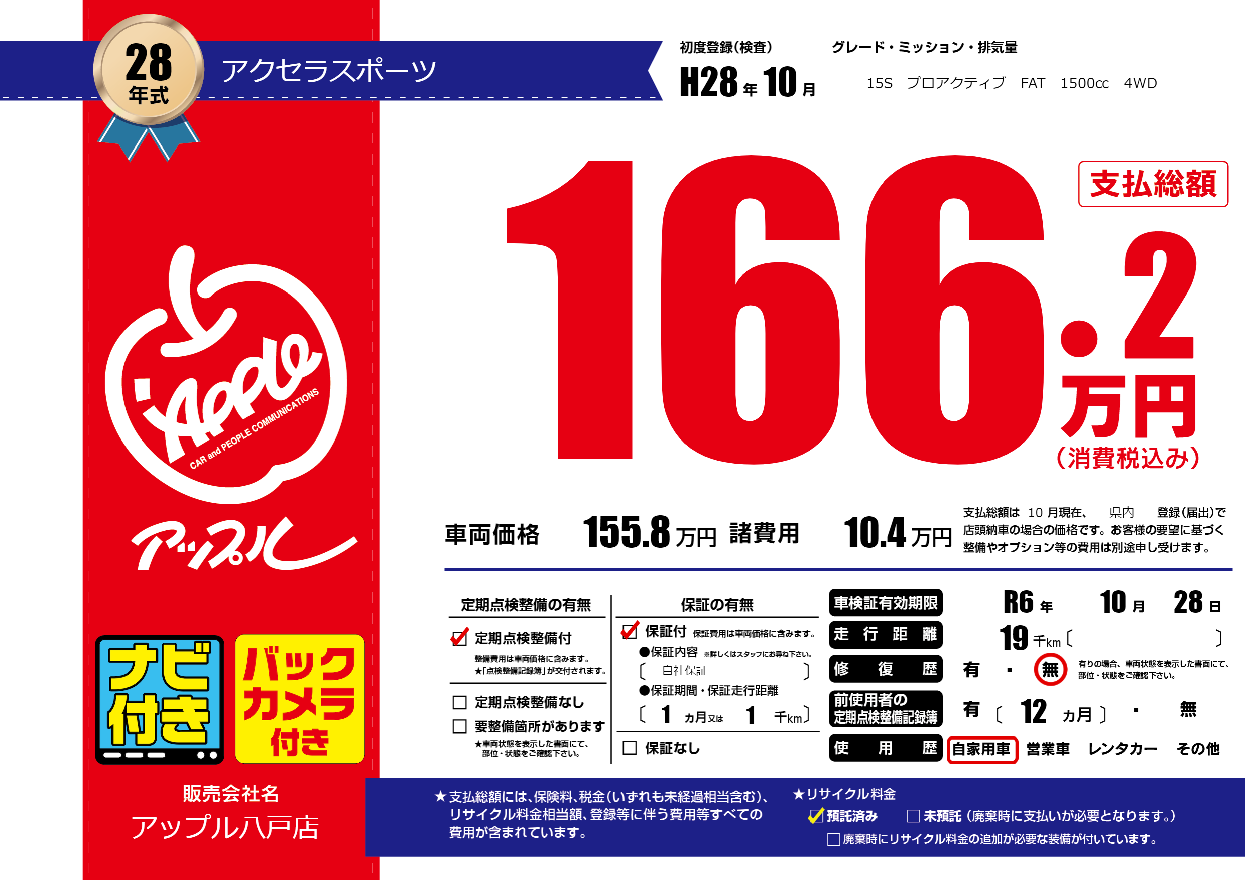 なし | 車検制限 | R6年10月28月 |