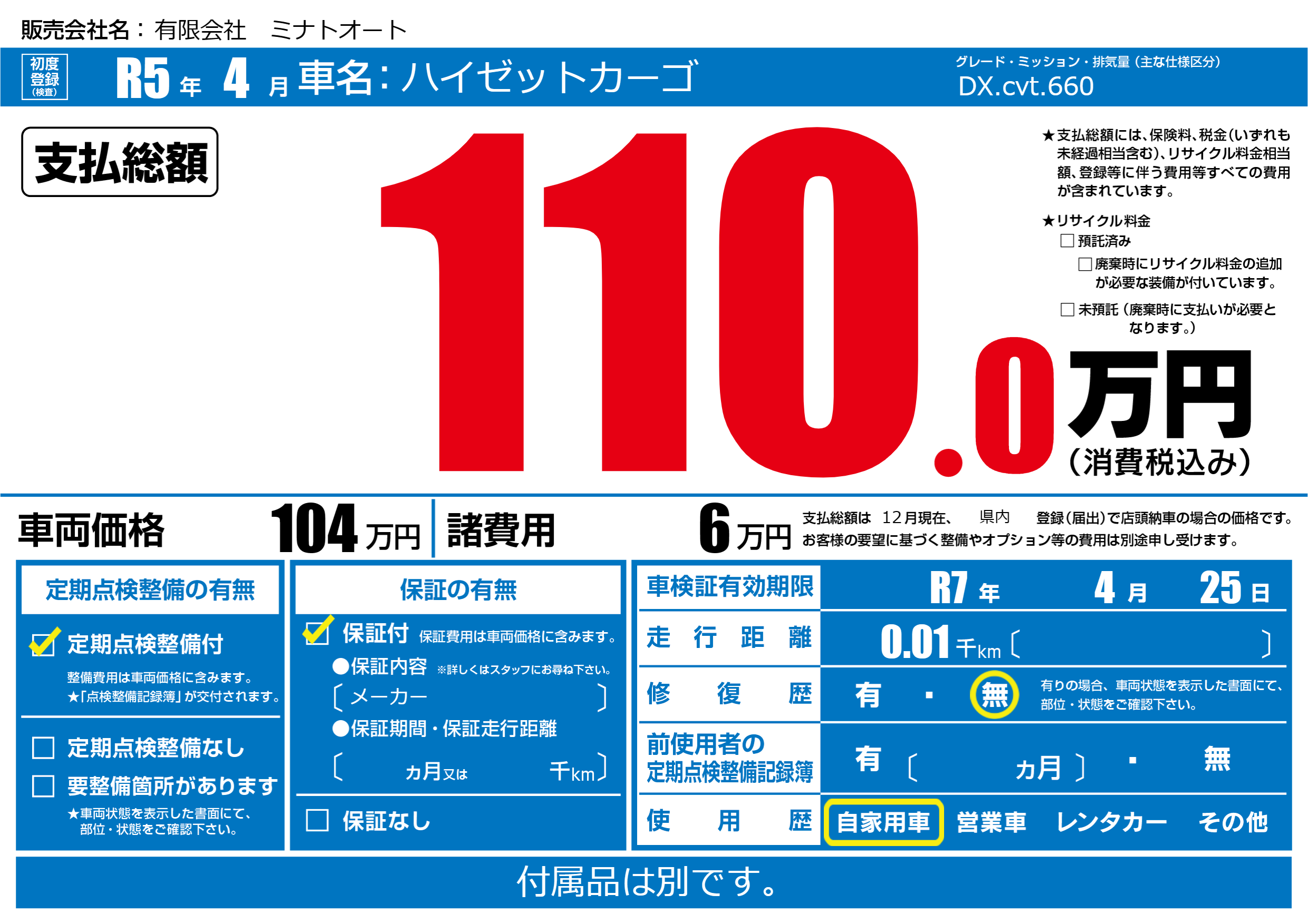 | 走行キロ | - | 初年度登録 | R5年4月 |