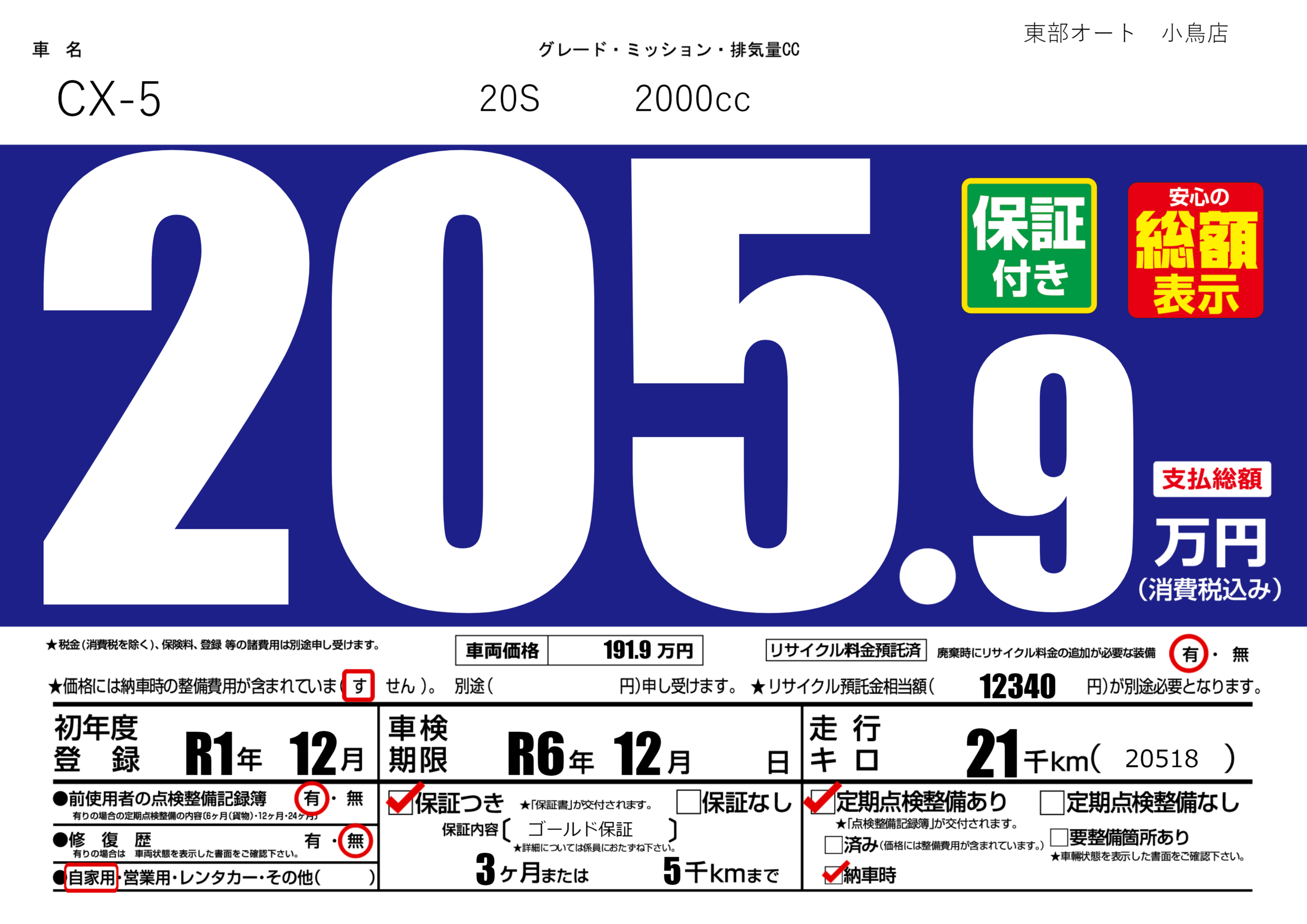 保証付き 保証内容( ゴールド保証) 3ヶ月または(5)千kmまで |
