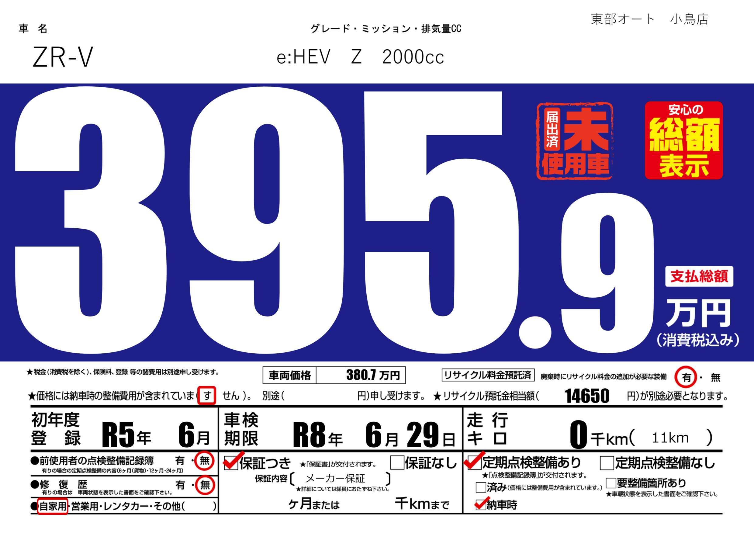 | 車名 | ZR-V | グレード ミッション 排気量 |