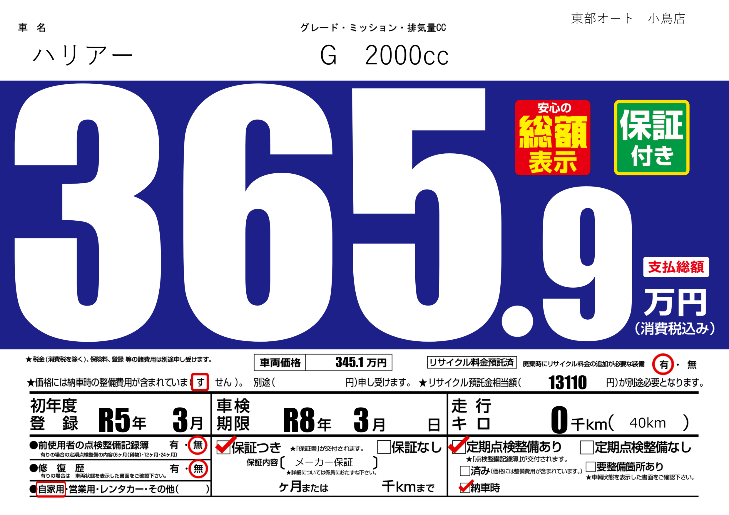 保証付き 保証内容( メーカー保証) ---ヶ月または()千kmまで |