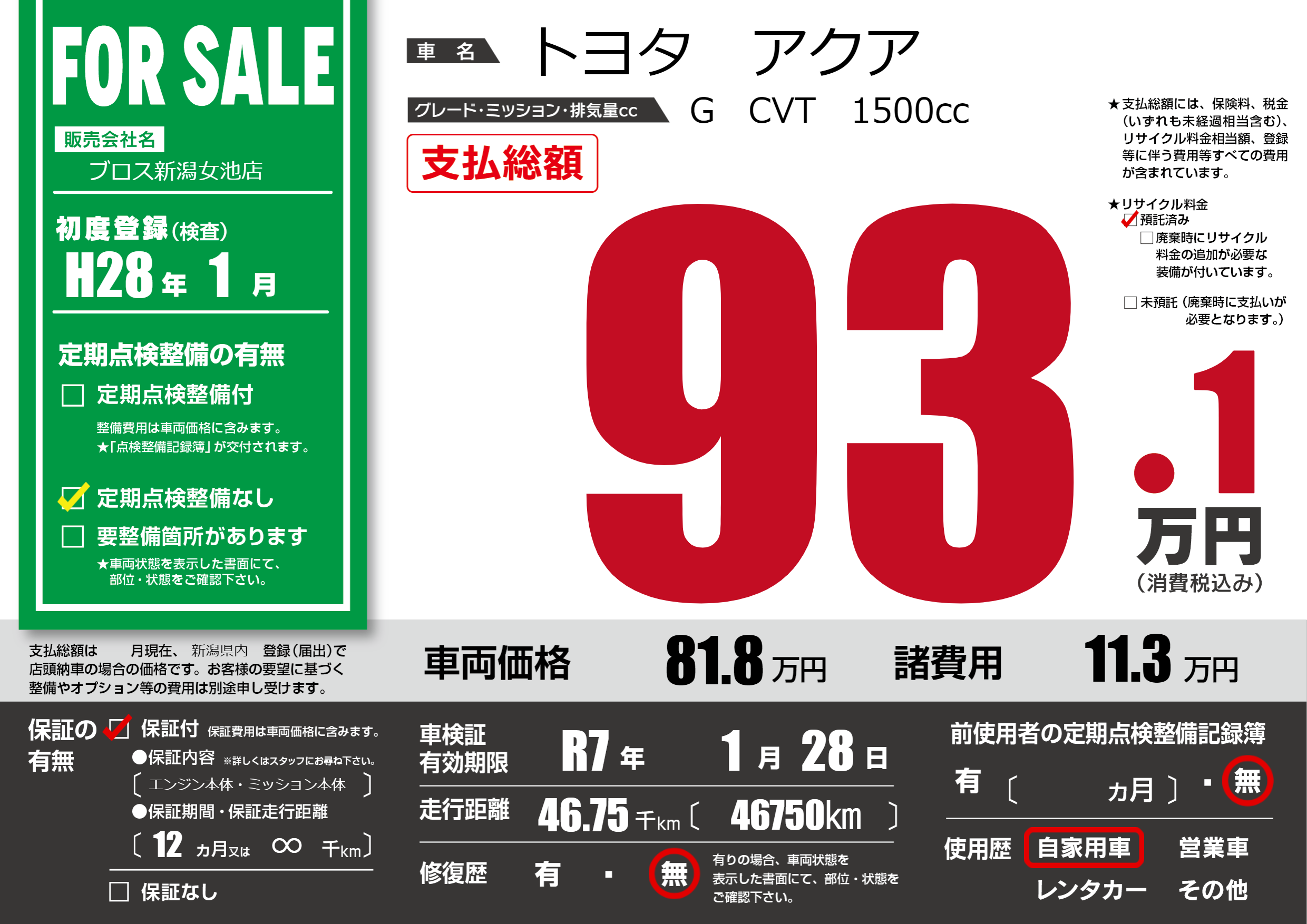 初年度登録 H28年1月
