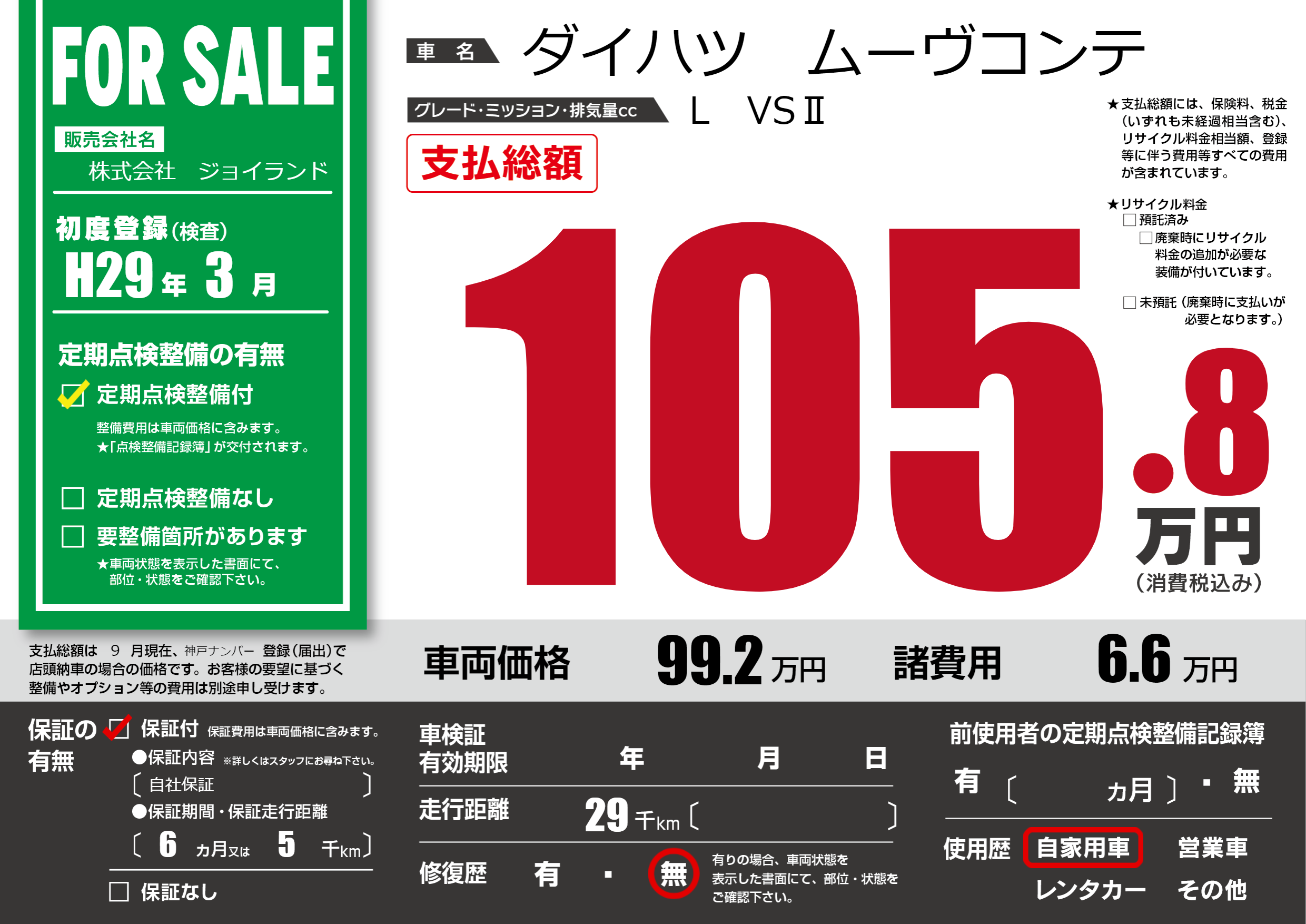 保証付き 保証内容(自社保証) 6ヶ月または5千km |