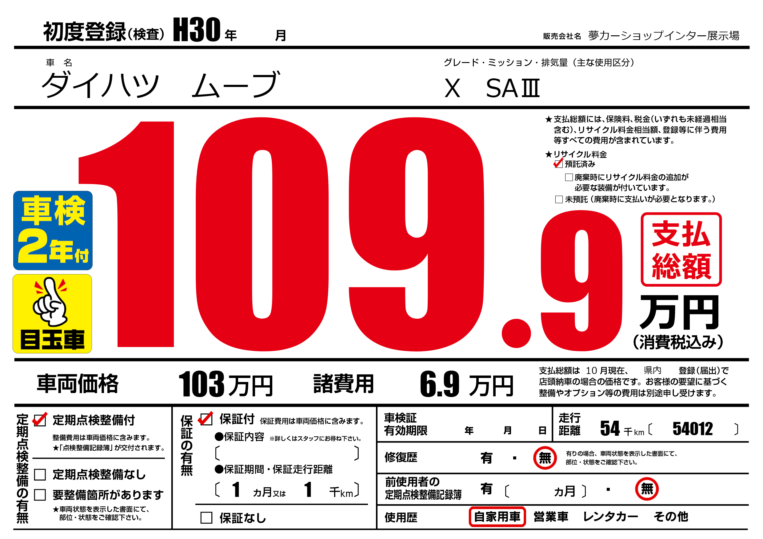 | 走行キロ | 5.4万km | 初年度登録 | H30年---月 |