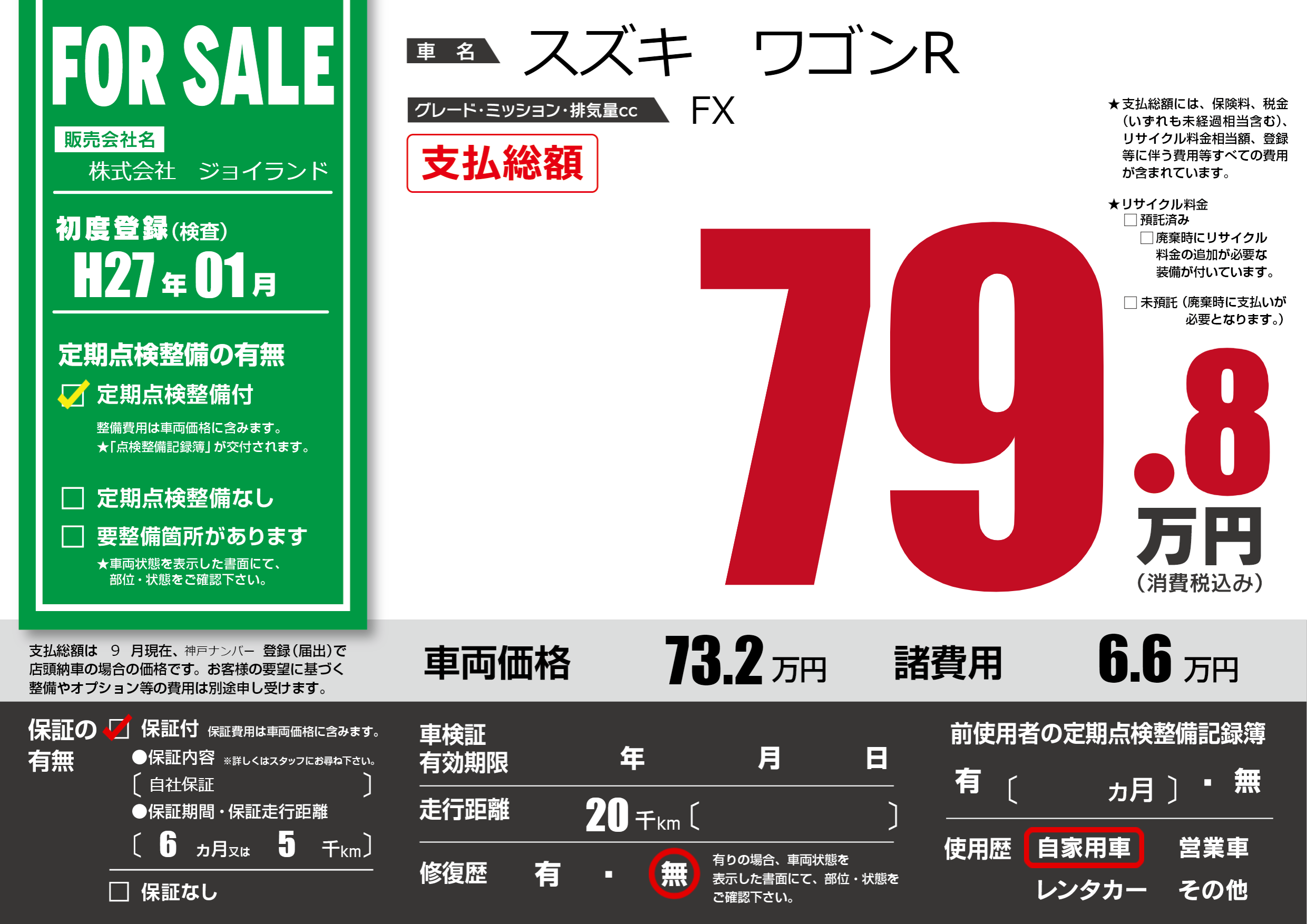| 車名 | スズキ ワゴンR | グレード ミッション 排気量 |