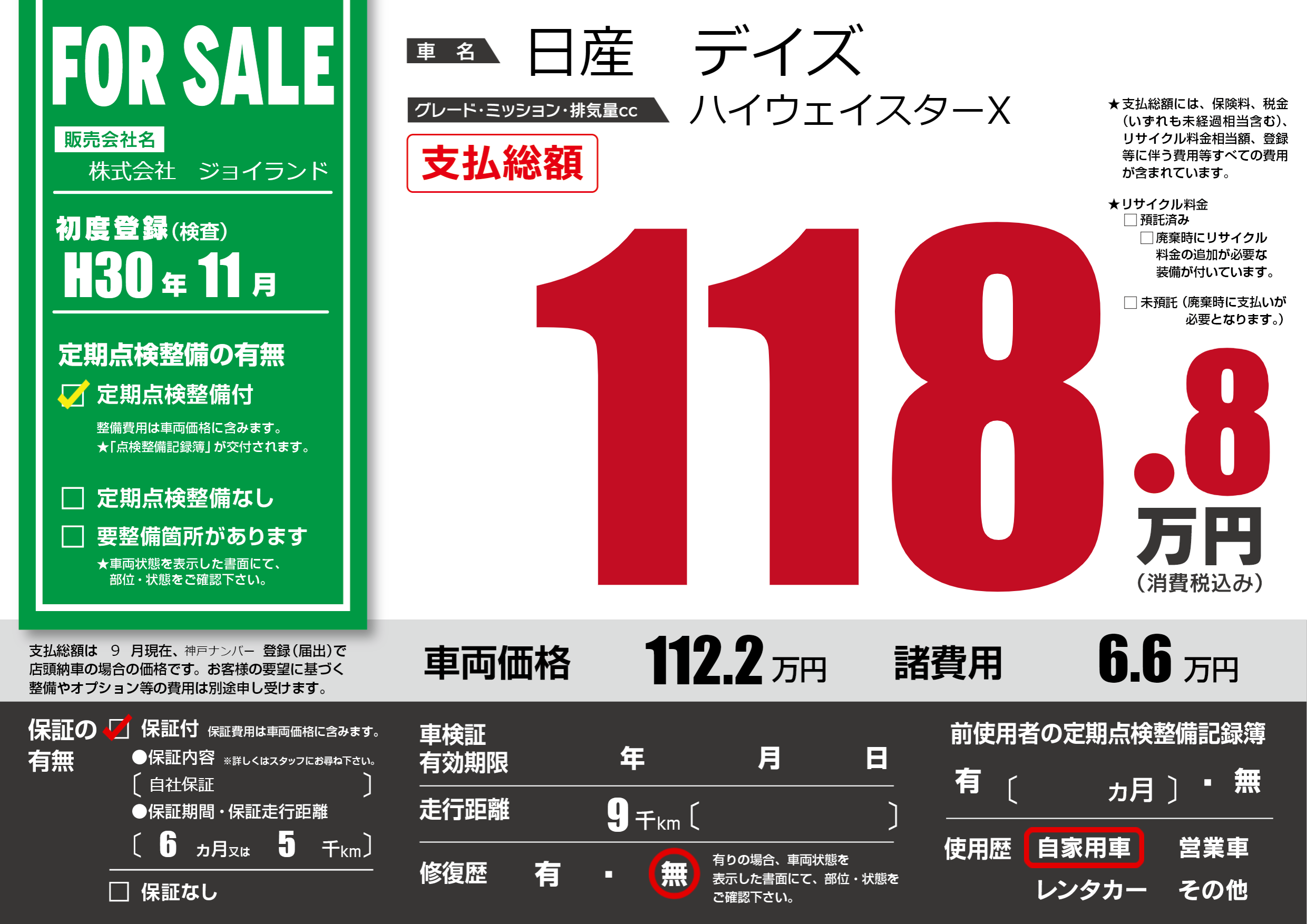 保証付き 保証内容(自社保証) 6ヶ月または5千km |