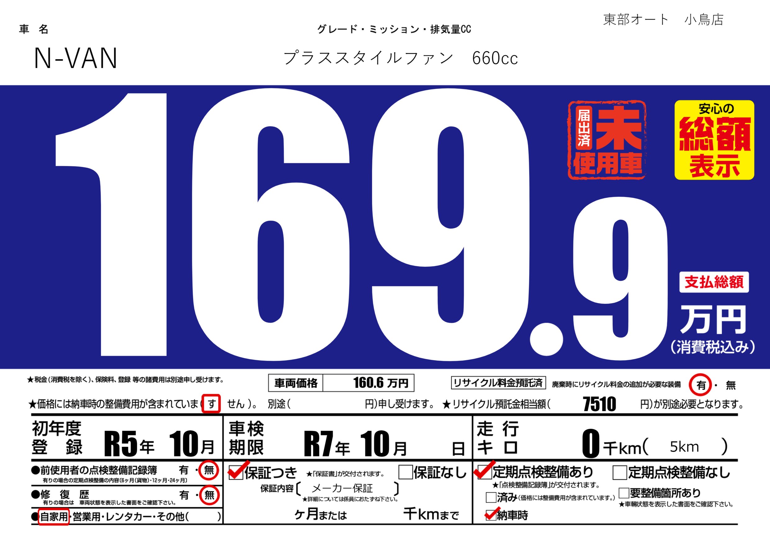 | 車検制限 | R7年 10月 - 日 | ||