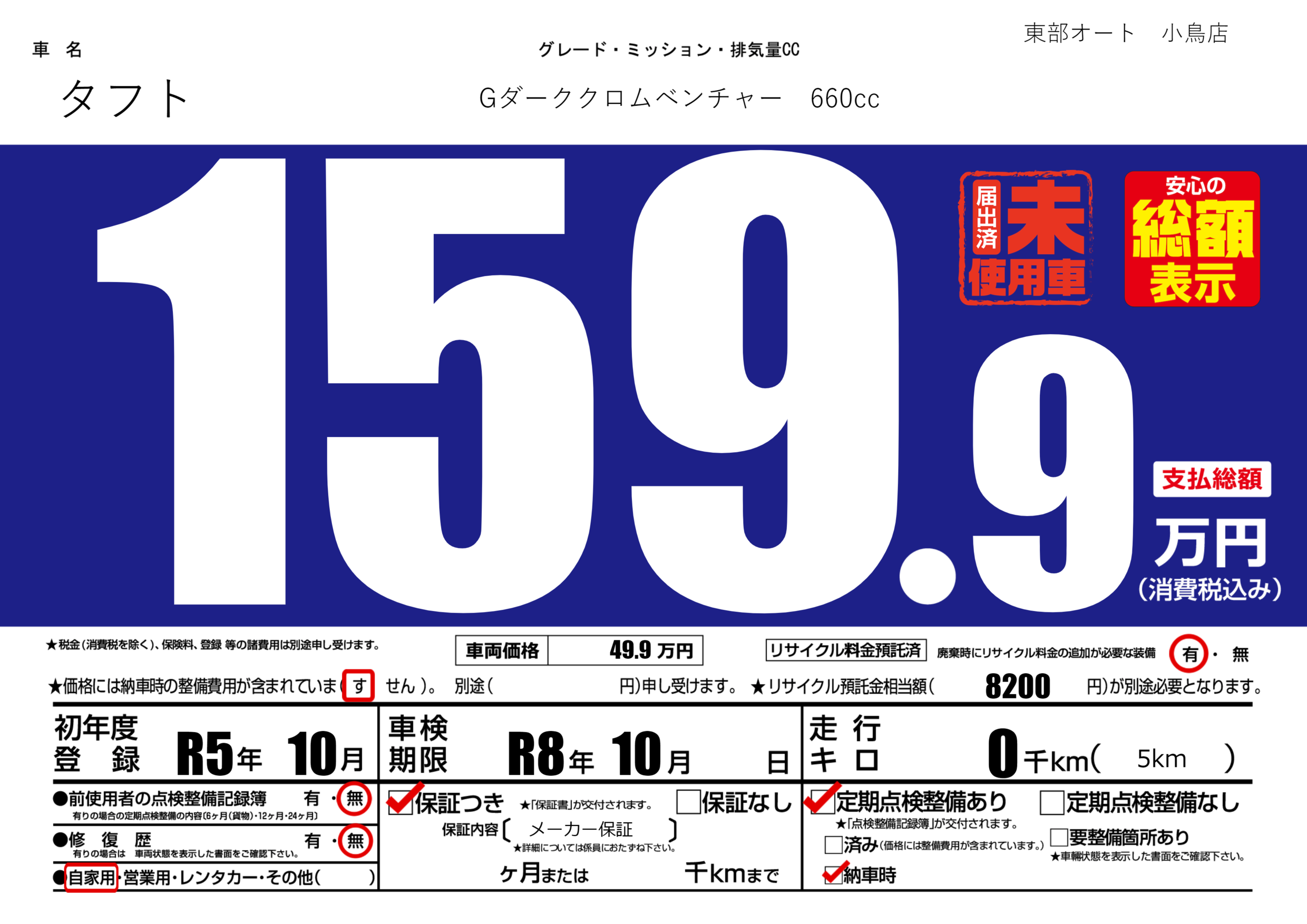 | 走行キロ | - | 初年度登録 | R5年10月 |
