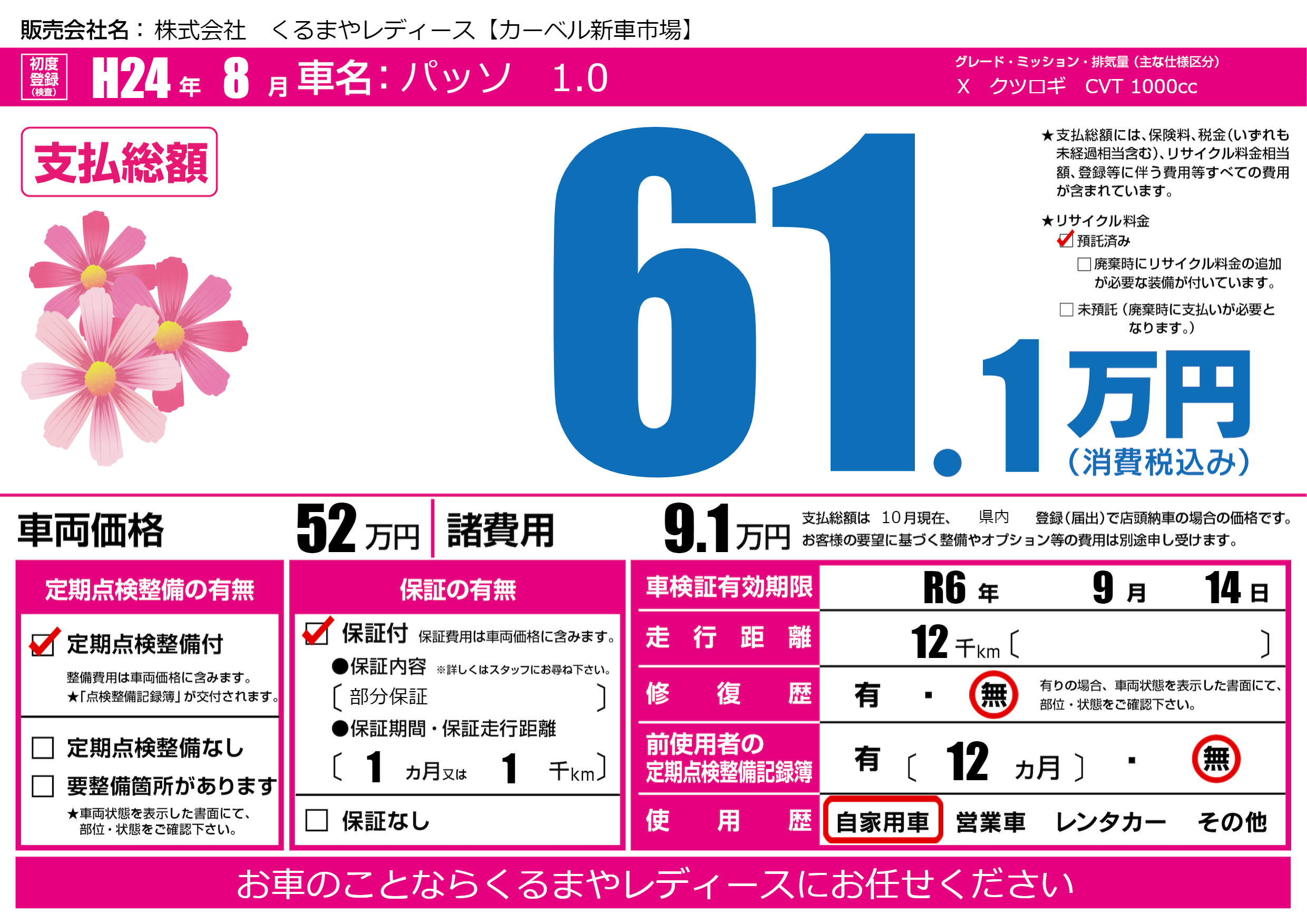 | 車検制限 | R6年 9月 14日 | ||