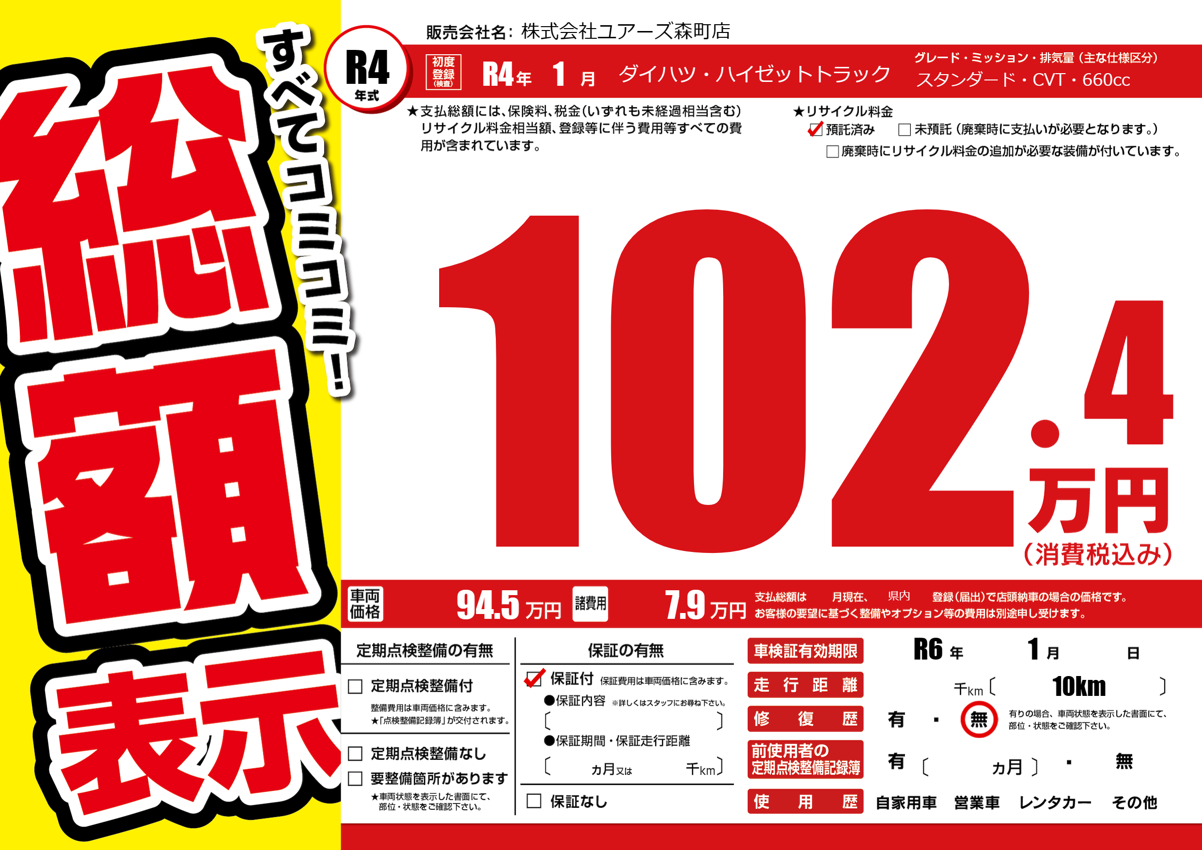 なし | 車検制限 | R6年1月---月 |