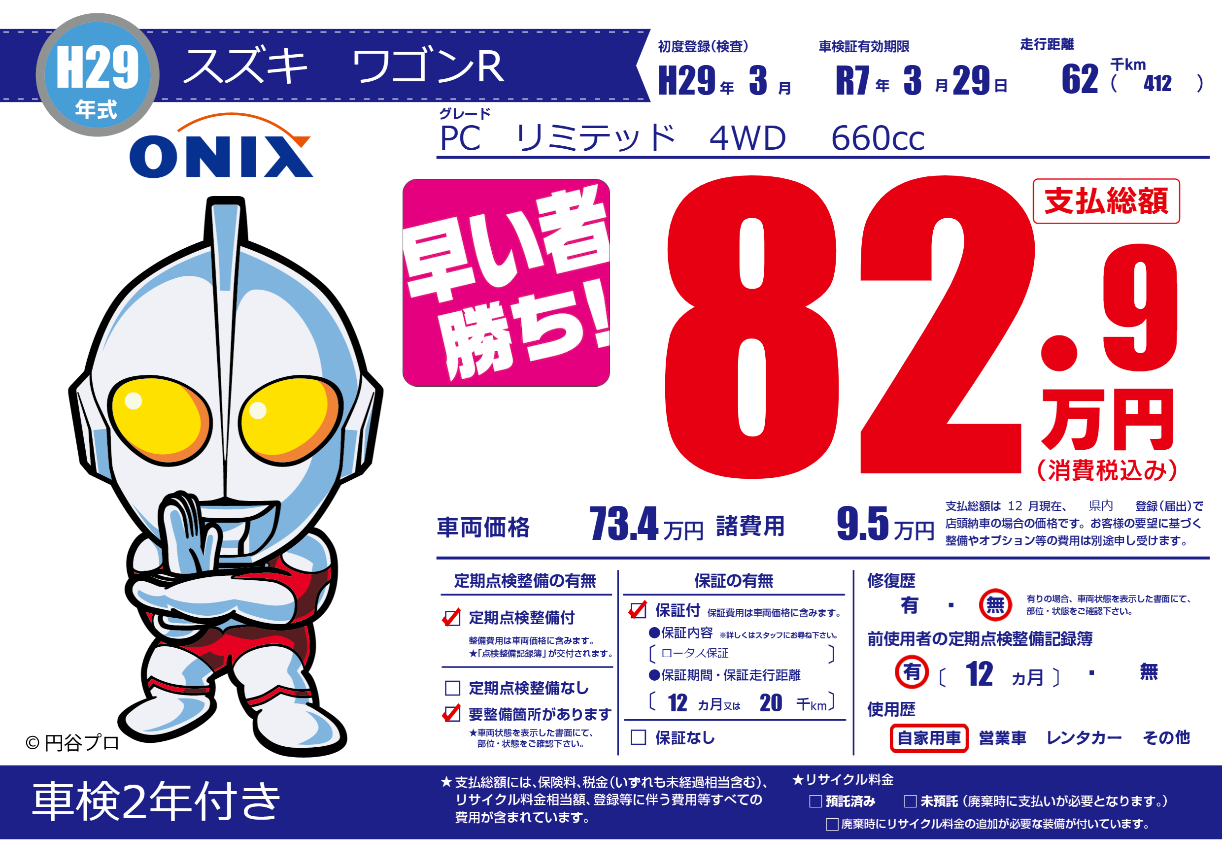 | 車名 | スズキ ワゴンR | グレード ミッション 排気量 |