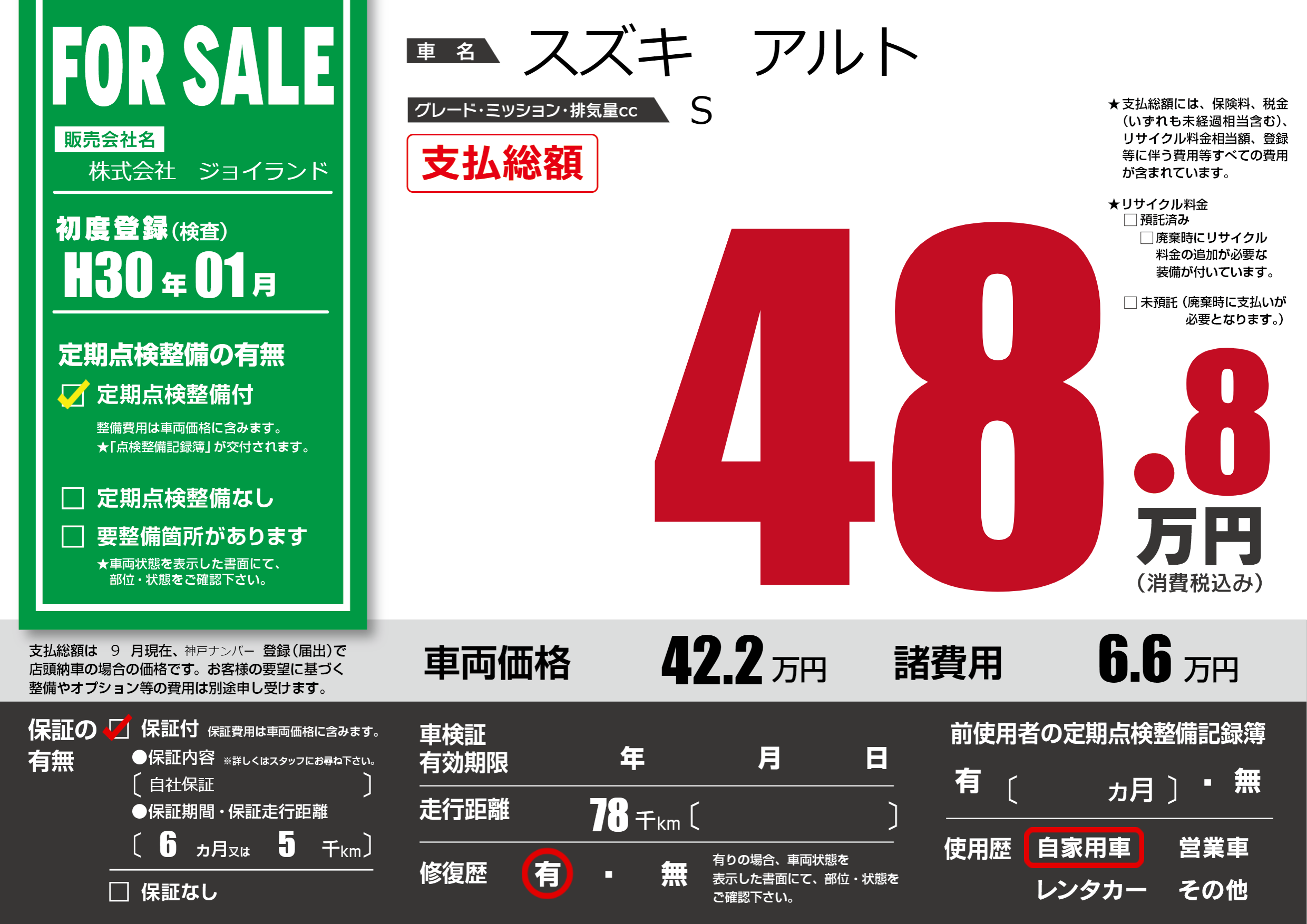 保証付き 保証内容(自社保証) 6ヶ月または(5)千kmまで |