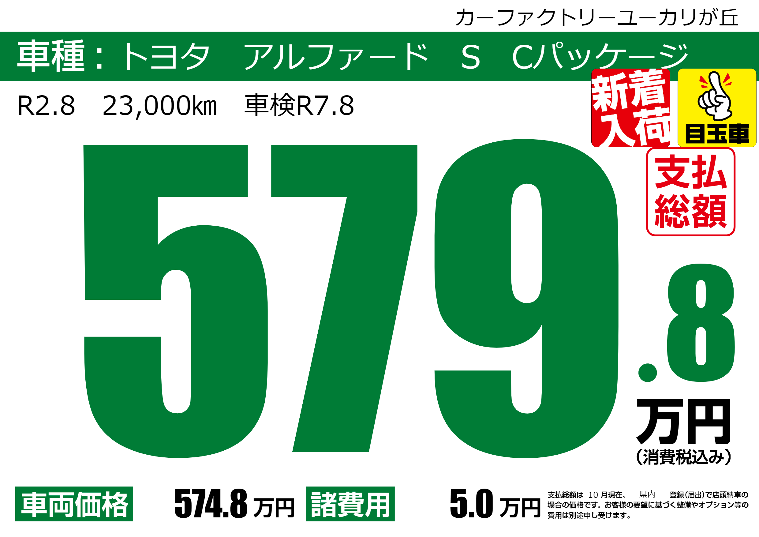 | 車名 | トヨタ アルファード S Cパッケージ | グレード ミッション 排気量 |