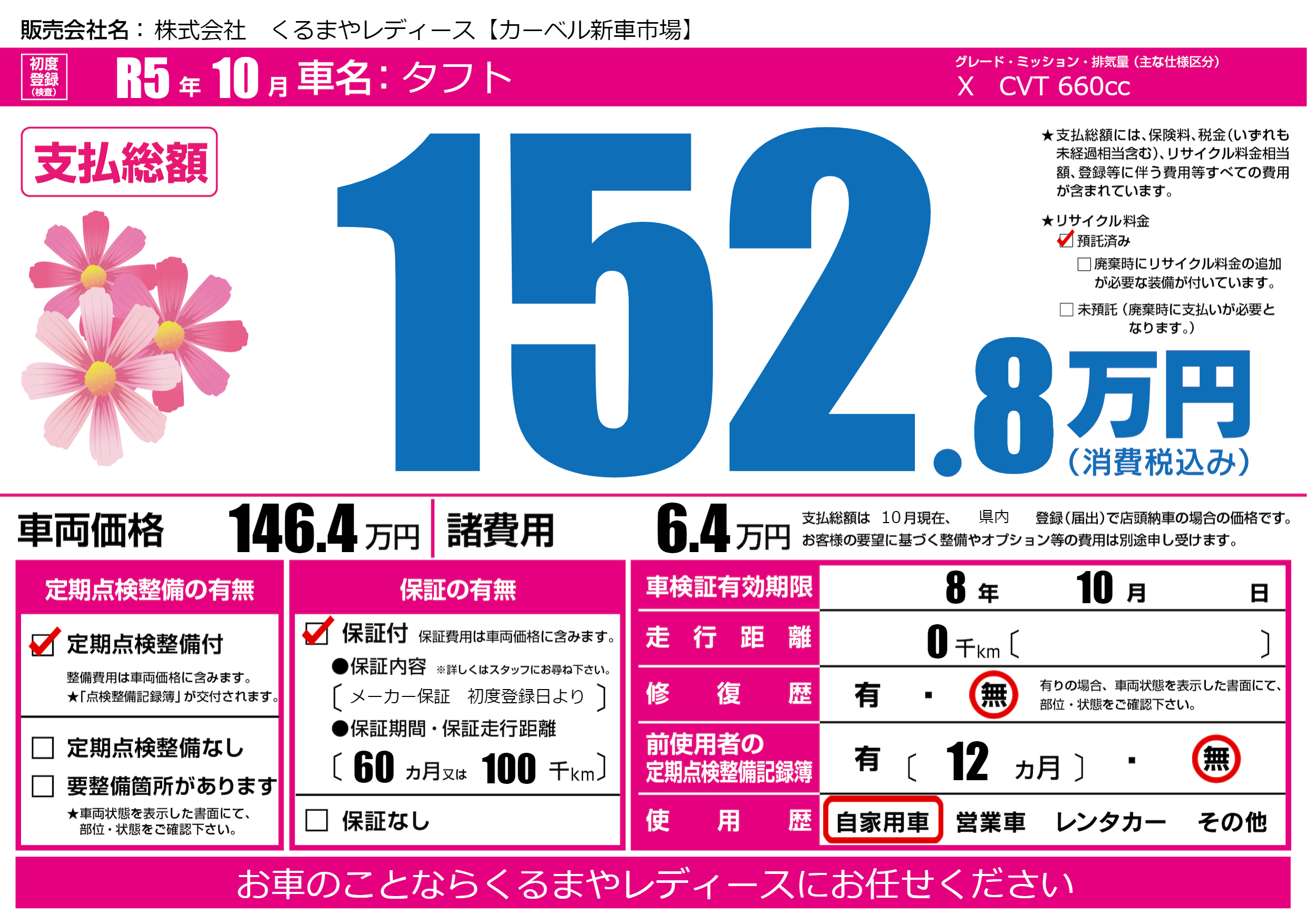 | 定期点検整備 | 定期点検整備あり | ||