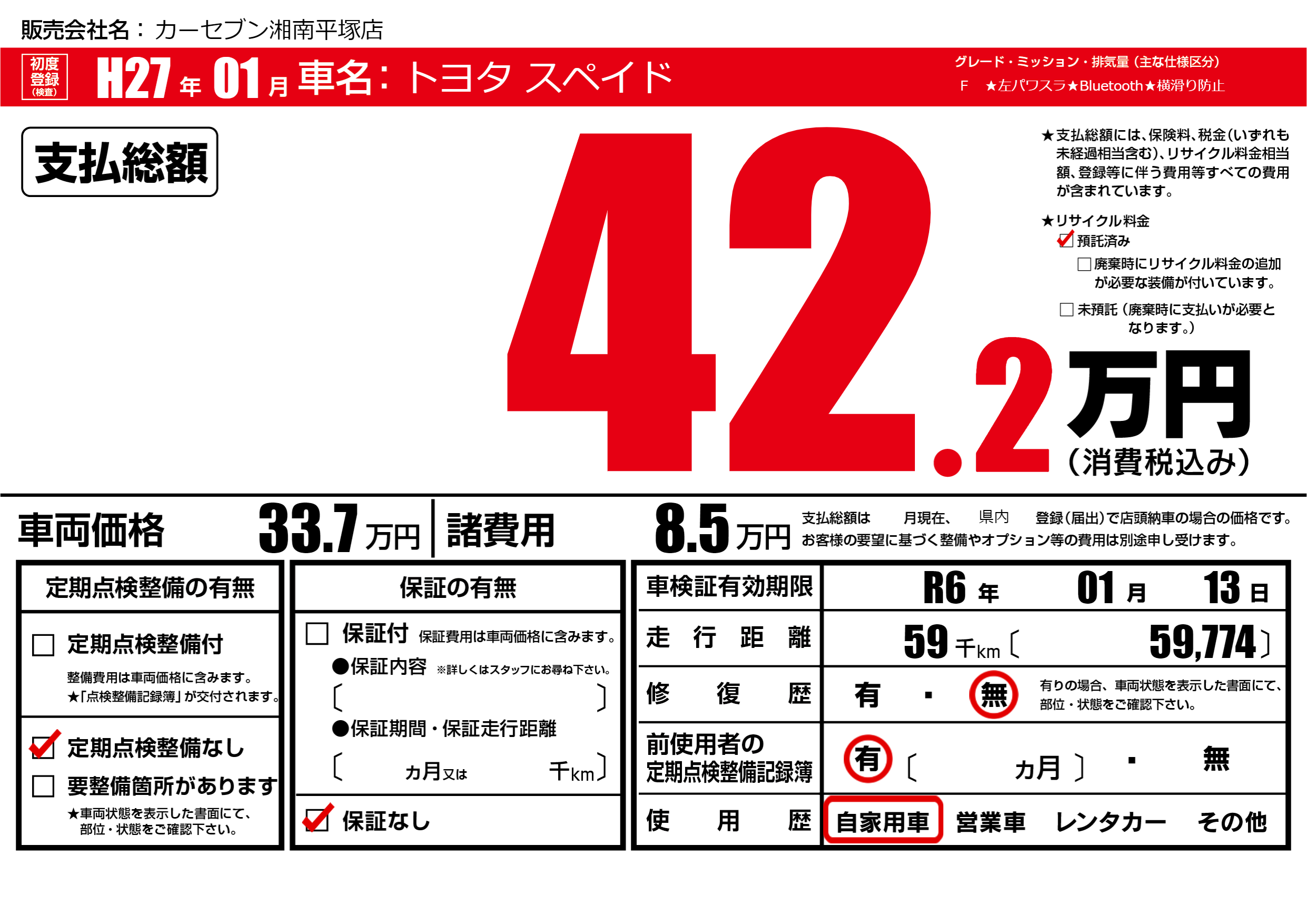 なし | 車検制限 | R6年01月13月 |