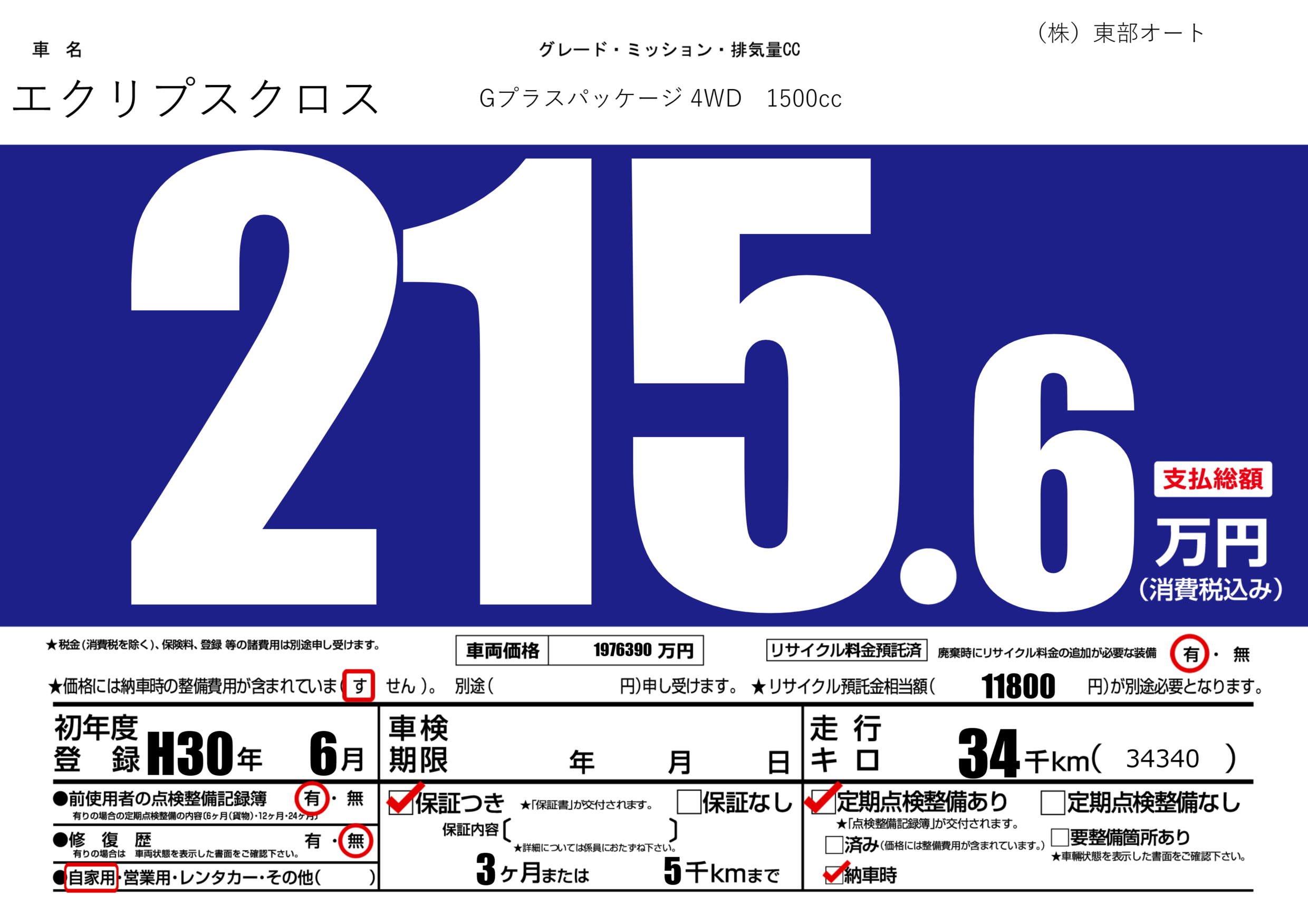 保証付き 保証内容(---) 3ヶ月または(5)千kmまで |