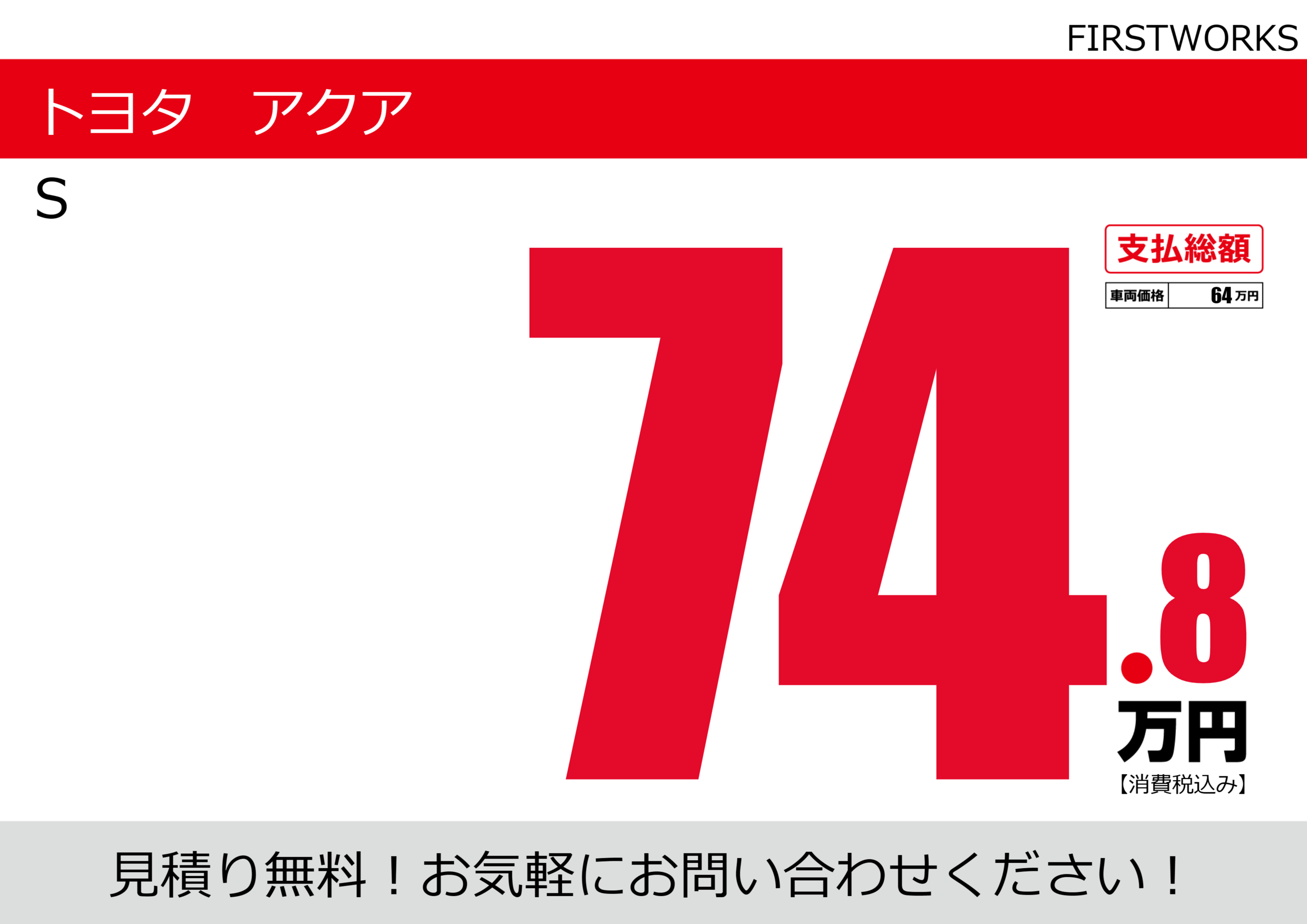 | 車名 | トヨタ アクア | グレード ミッション 排気量 |