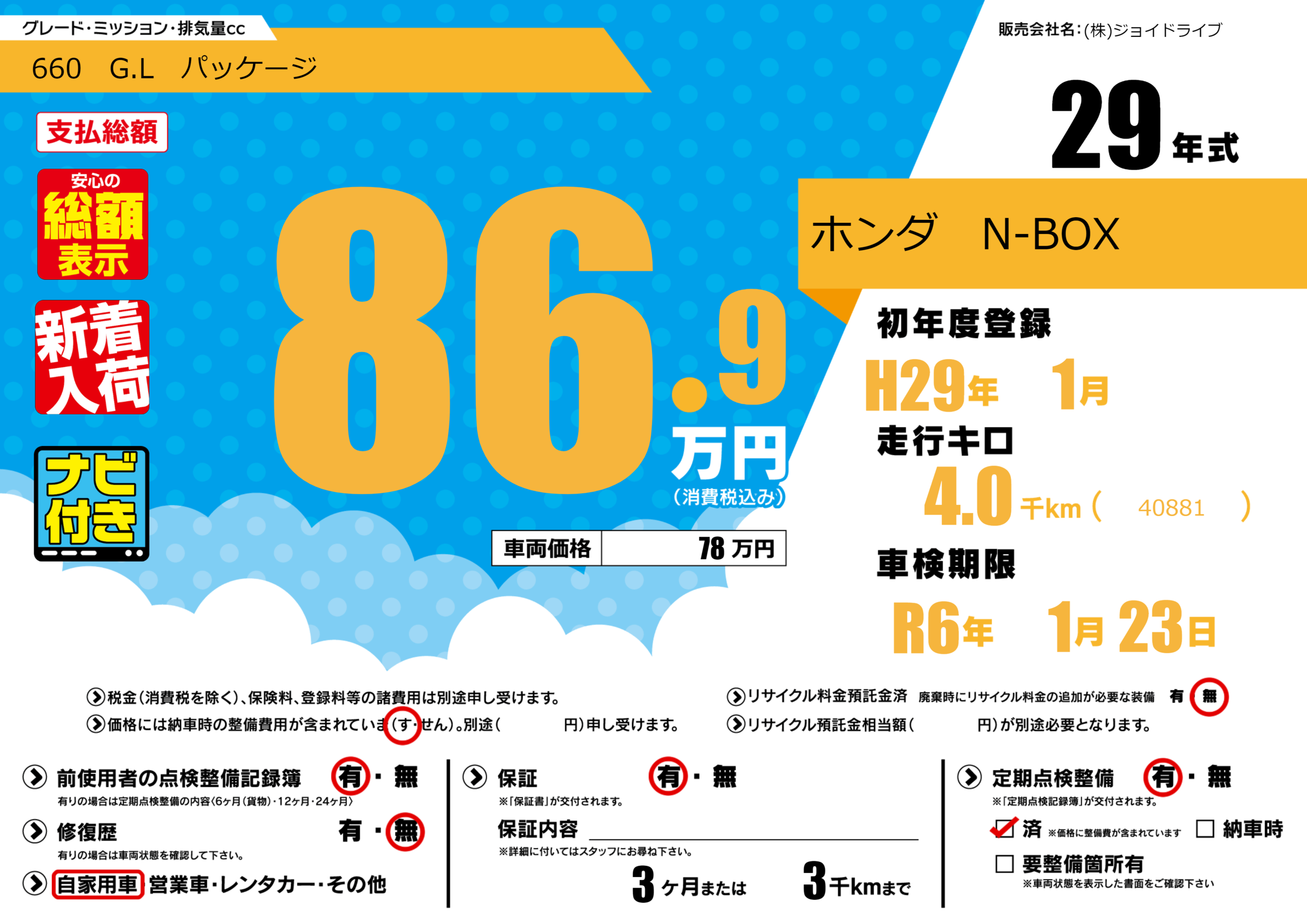 | 定期点検整備 | 定期点検整備あり 定期点検整備済み | ||