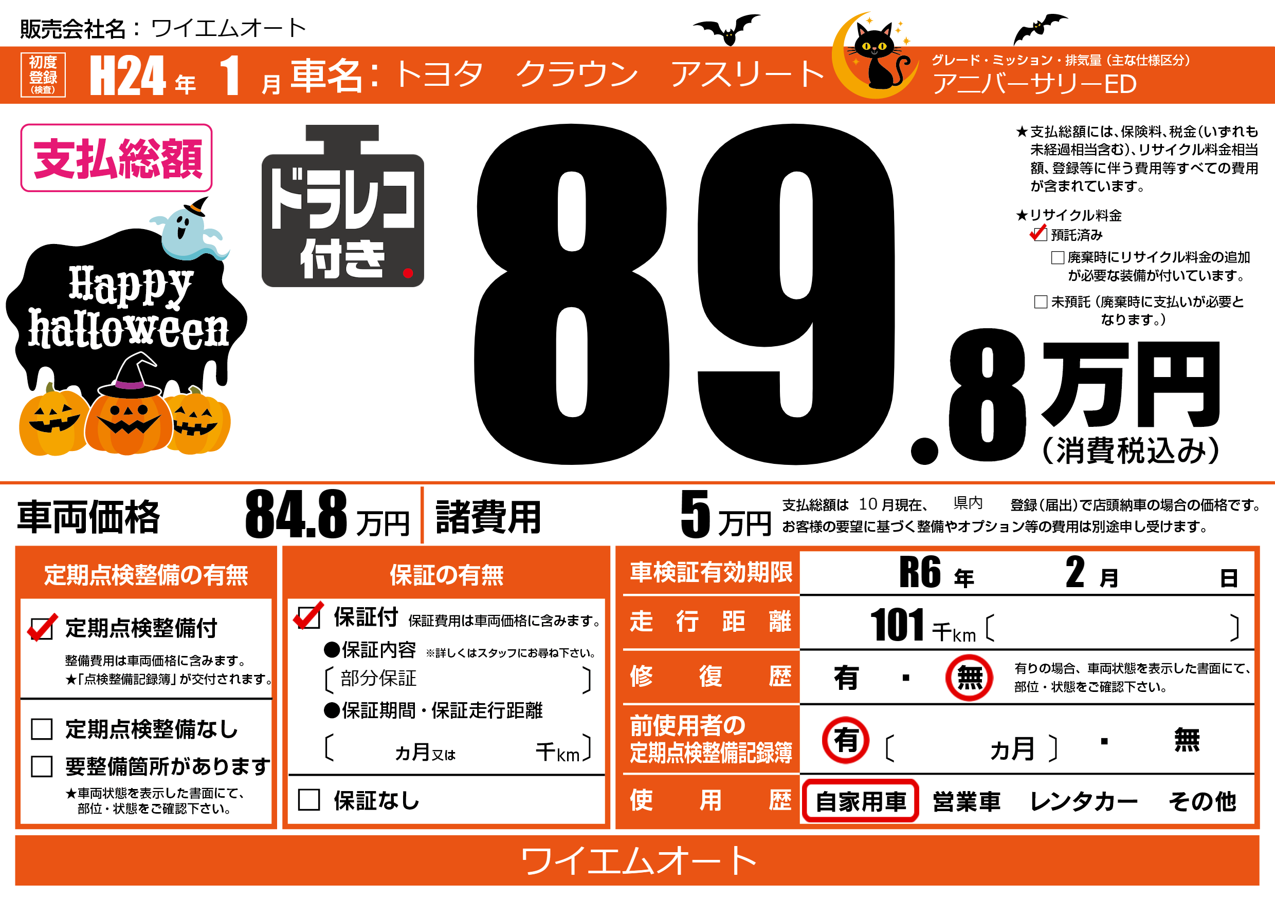| 走行キロ | 10.1万km | 初年度登録 | H24年1月 |