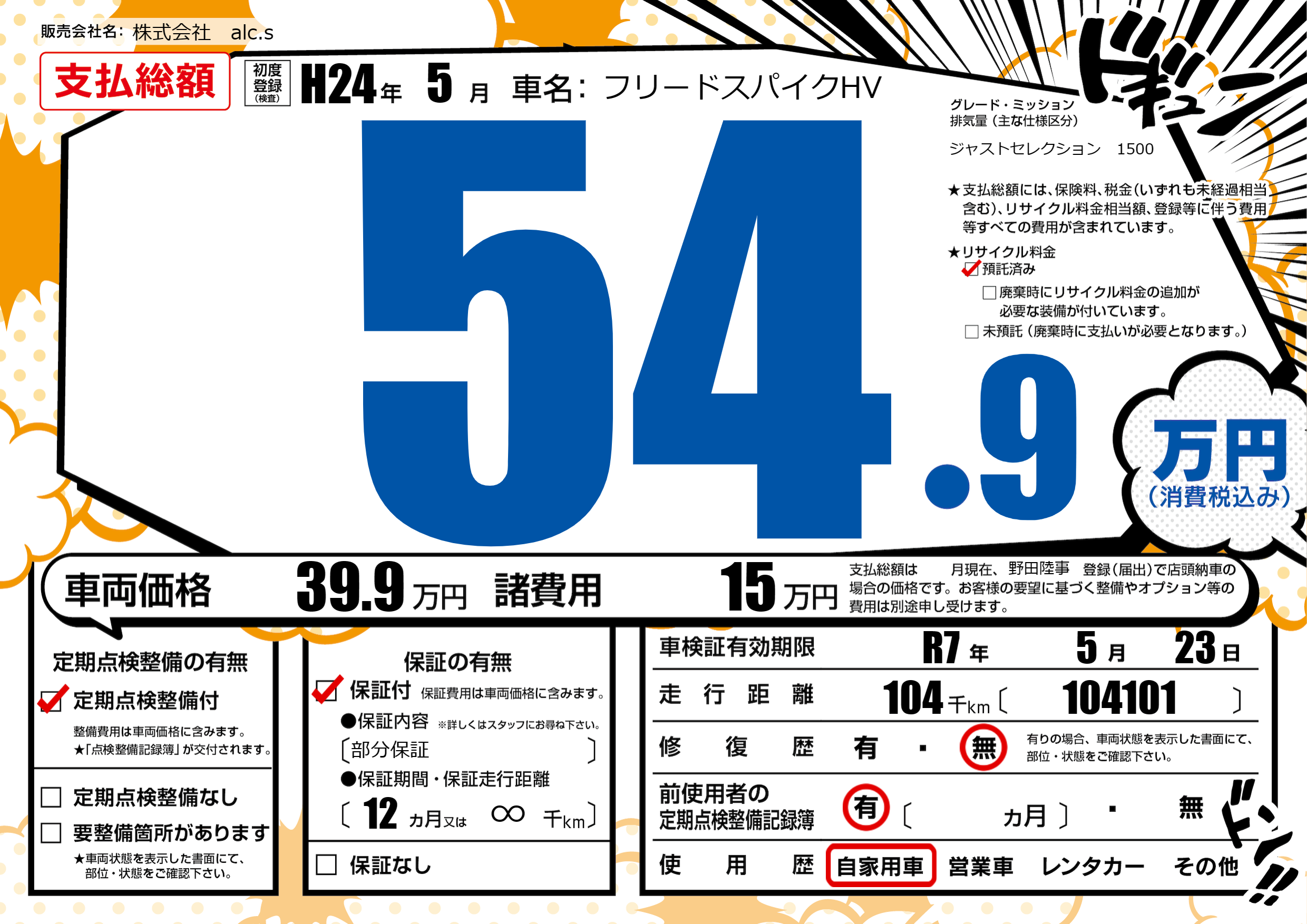 なし | 車検制限 | R7年5月23月 |