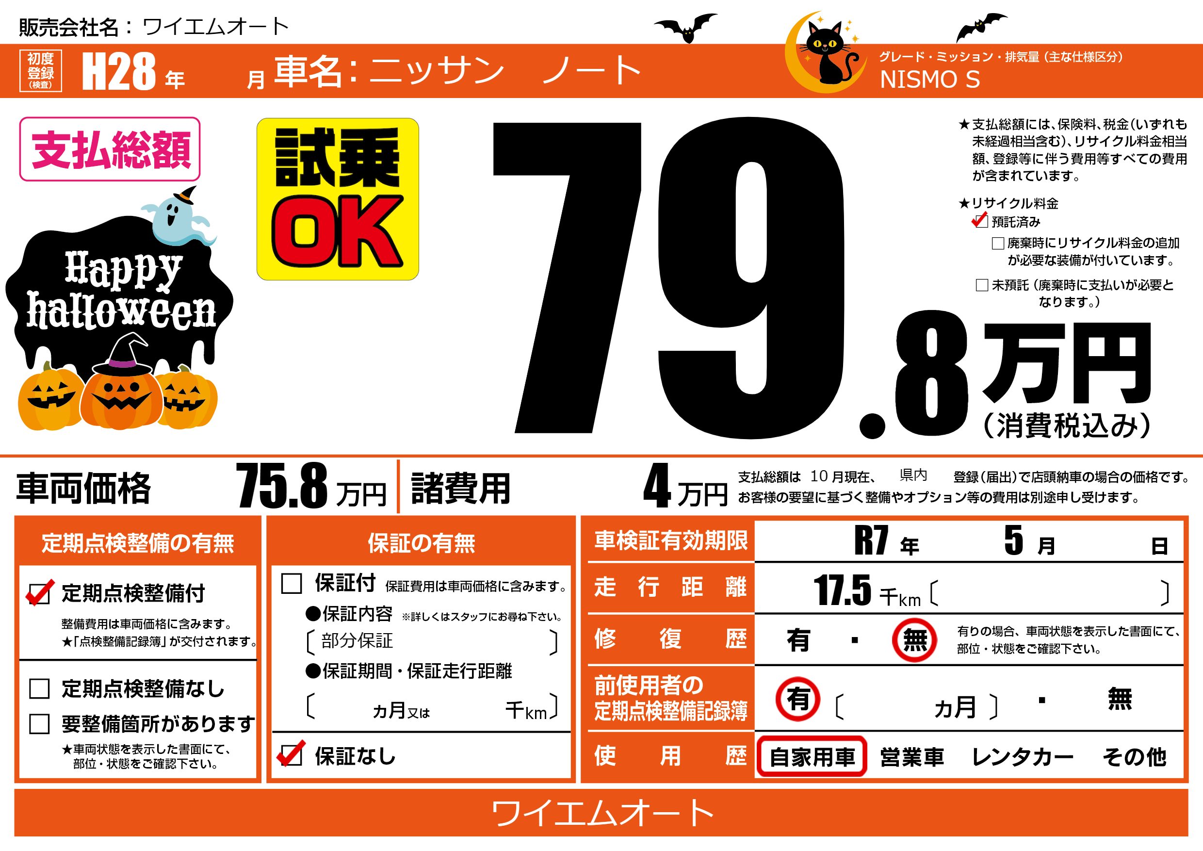 | 走行キロ | 1.7万km | 初年度登録 | H28年---月 |