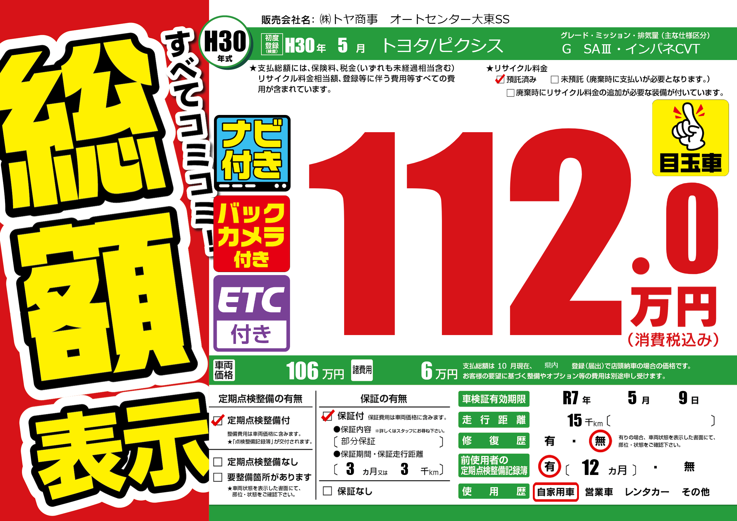 | 車検制限 | R7年 5月 9日 | ||
