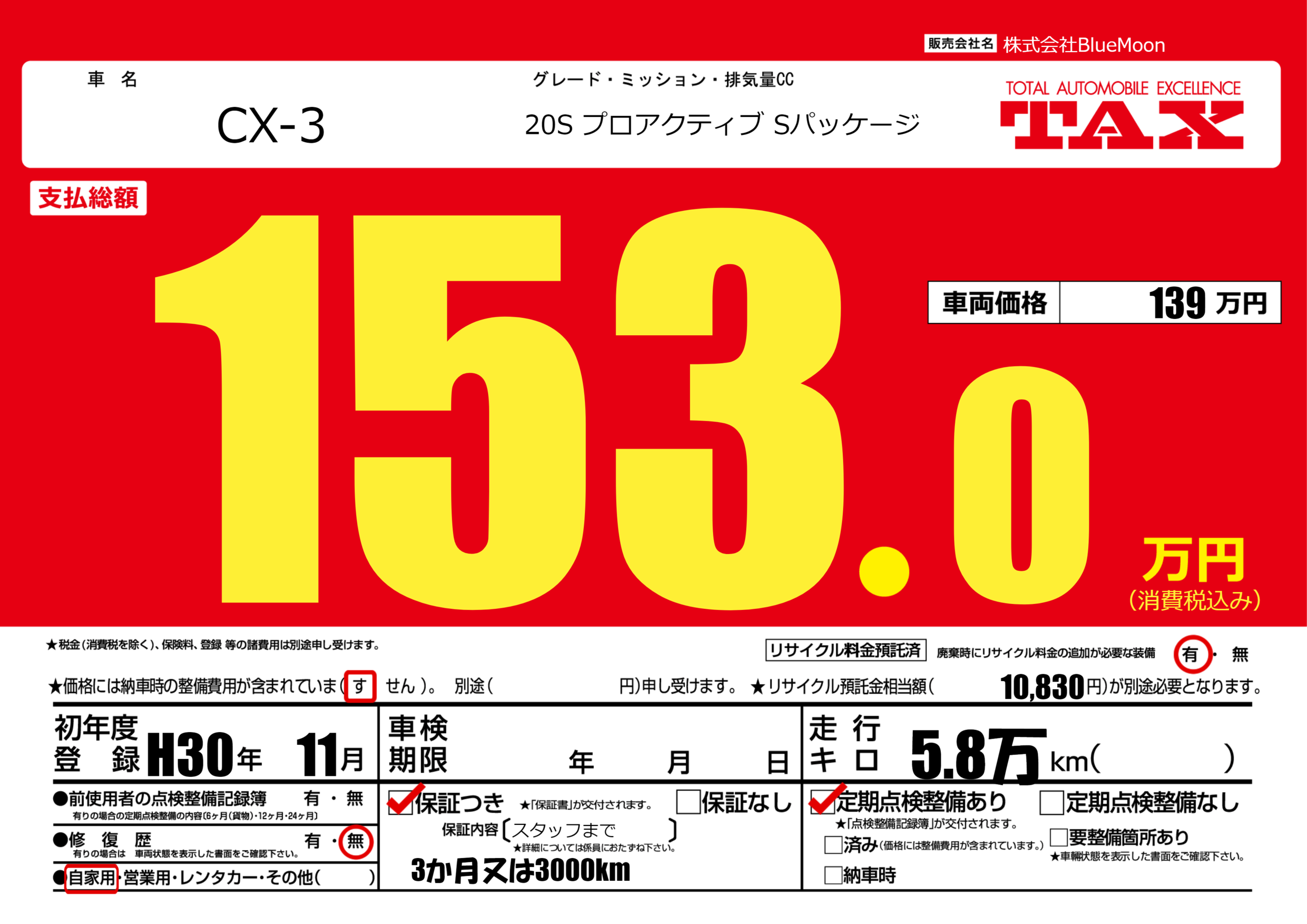 | 車名 | CX-3 | グレード ミッション 排気量 |