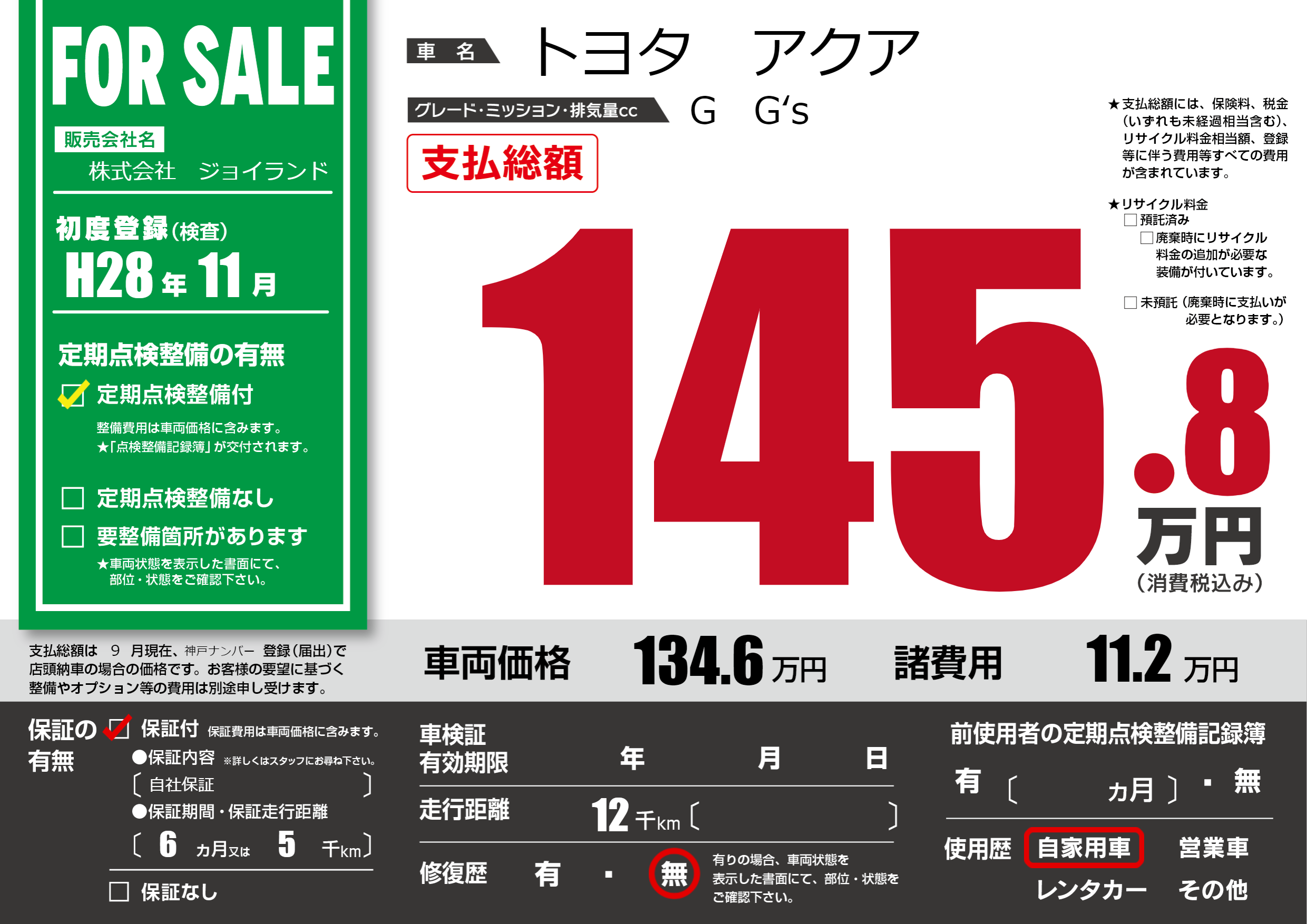保証付き 保証内容(自社保証) 6ヶ月または(5)千kmまで |