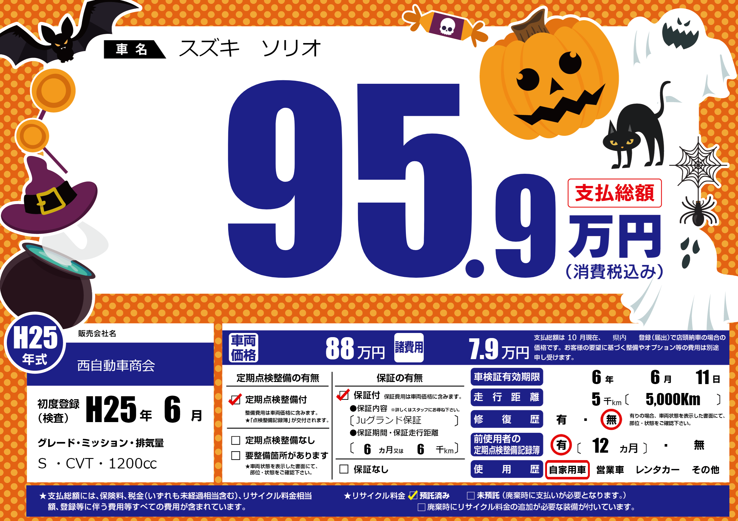 | 走行キロ | 0.5万km | 初年度登録 | H25年6月 |