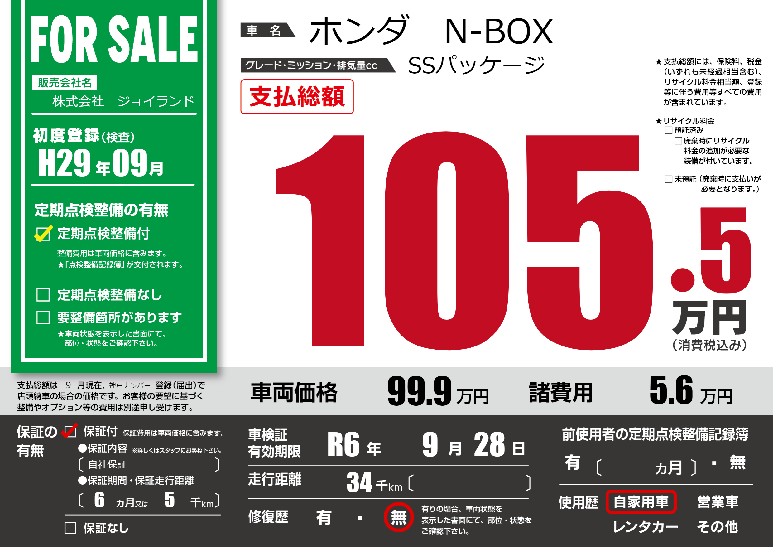 | 走行キロ | 3.4万km | 初年度登録 | H29年09月 |