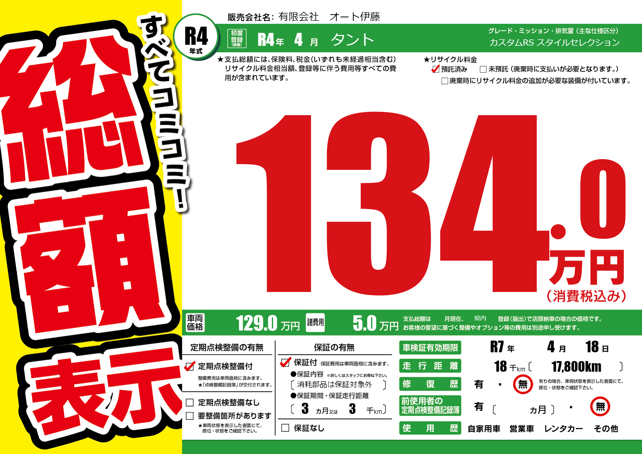 | 走行キロ | 1.8万km | 初年度登録 | R4年4月 |