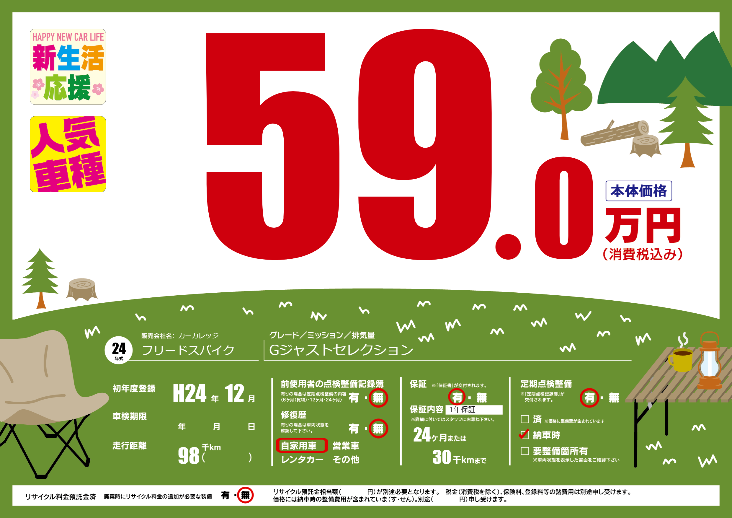 | 走行キロ | 9.8万km | 初年度登録 | H24年12月 |